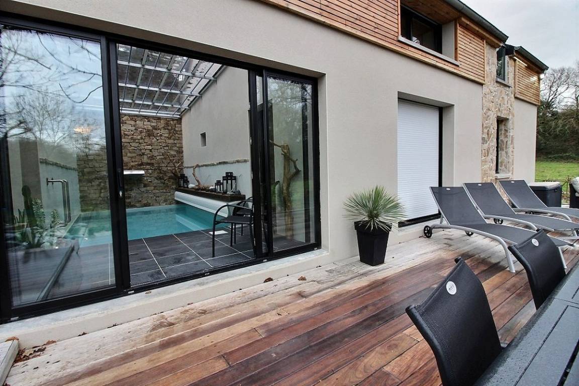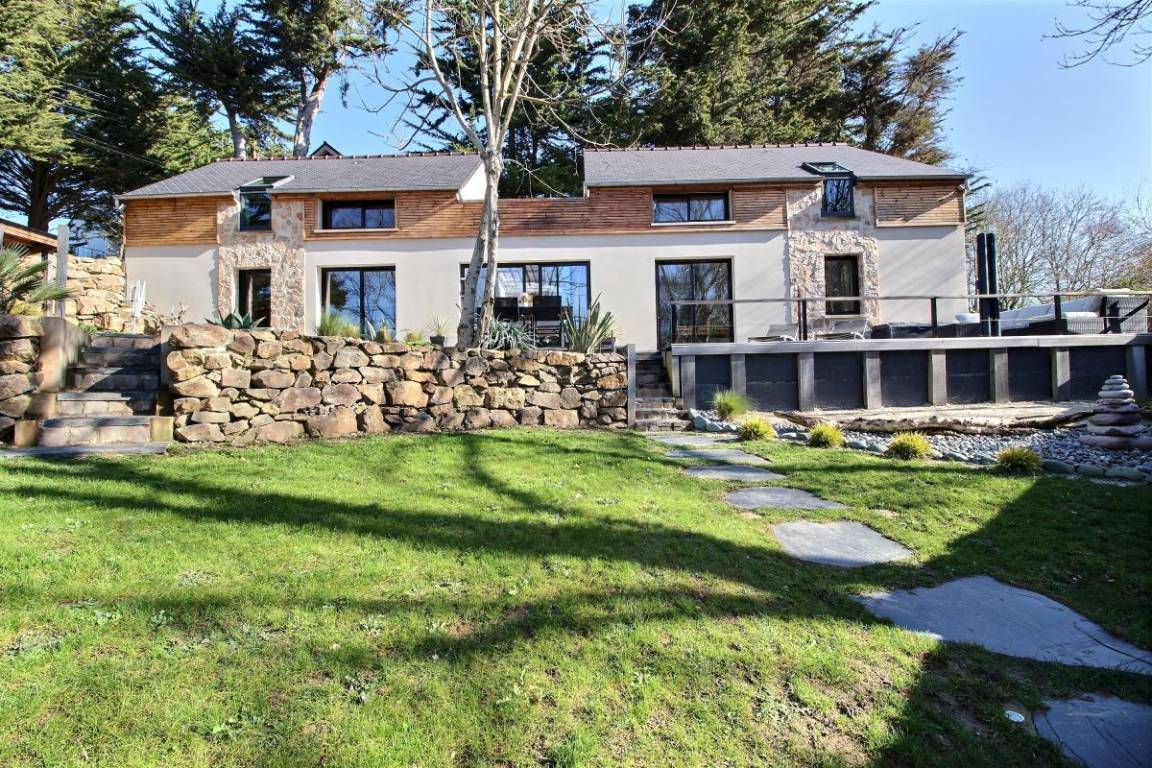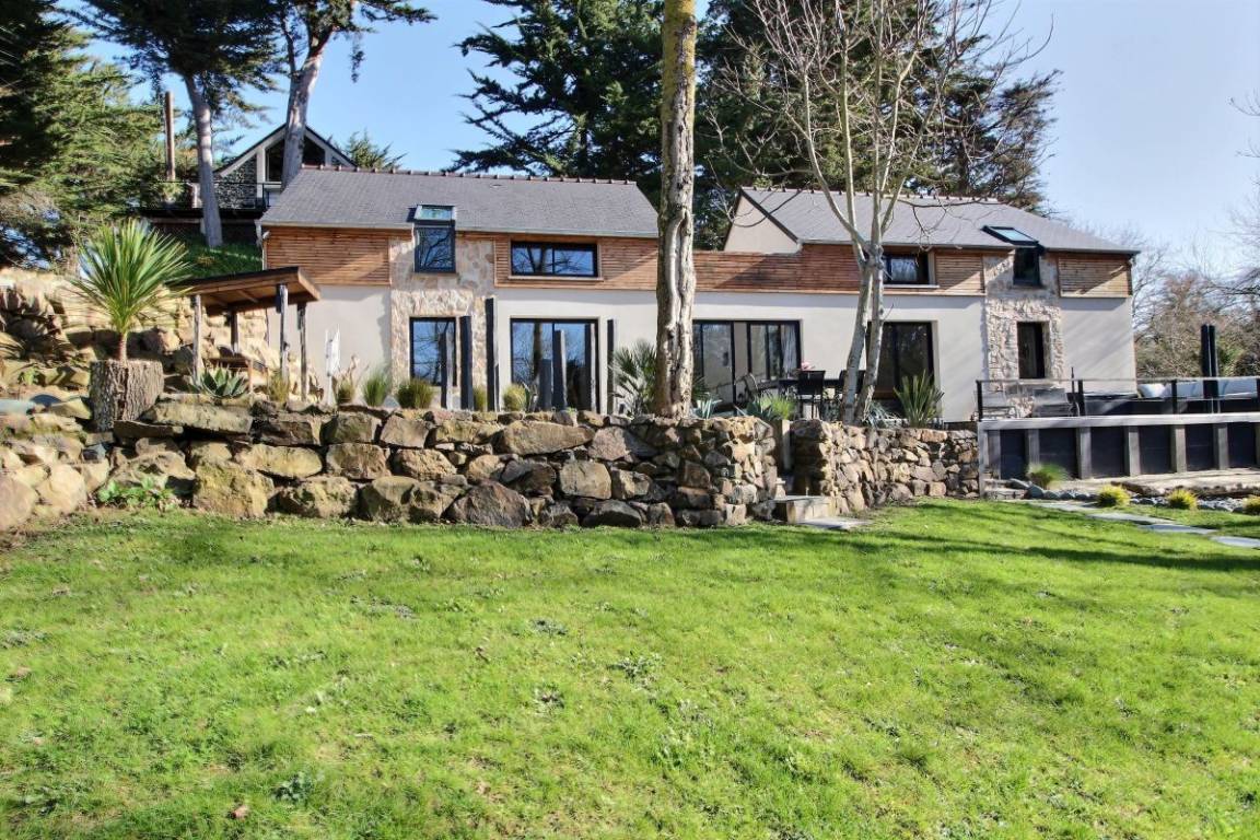 Nur 600 Meter vom Strand in Saint Pabu auf einem wunderschön angelegten Grundstück, dieses prächtige Ferienhaus Baujahr 2016, das Ihnen Luxus-Ausstattungen und sorgfältig ausgewählte Materialien bietet. Und um diese Adresse einmalig zu machen hat der Eigentümer eine spezielle Dekoration gewünscht. Ein weiterer Vorzug des Hauses ist das geheizte Innenschwimmbad mit Kaskade, das Sie nach dem Faulenzen am Meer (10 Strände in Erquy) oder nach Ihren Ausflügen allzeit nutzen können. Das Kap von Erquy ist 4 km entfernt, das Kap Fréhel 12 km abseits, und Pléneuf Val Andre, das schöne Seebad mit Thalassotherapie-Zentrum, Kasino und 18-Loch-Golfplatz befindet sich 8 km außerhalb.