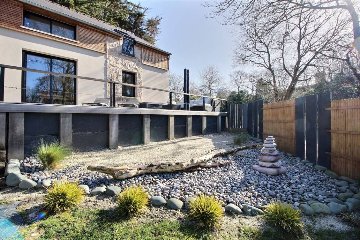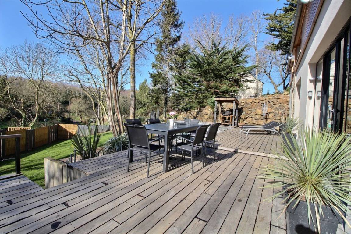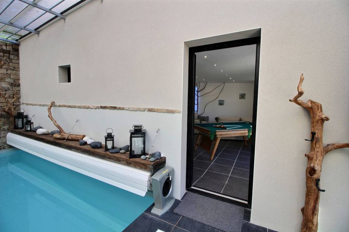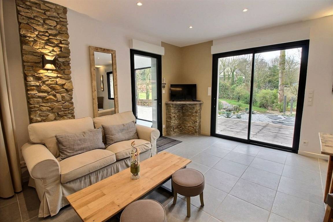 Nur 600 Meter vom Strand in Saint Pabu auf einem wunderschön angelegten Grundstück, dieses prächtige Ferienhaus Baujahr 2016, das Ihnen Luxus-Ausstattungen und sorgfältig ausgewählte Materialien bietet. Und um diese Adresse einmalig zu machen hat der Eigentümer eine spezielle Dekoration gewünscht. Ein weiterer Vorzug des Hauses ist das geheizte Innenschwimmbad mit Kaskade, das Sie nach dem Faulenzen am Meer (10 Strände in Erquy) oder nach Ihren Ausflügen allzeit nutzen können. Das Kap von Erquy ist 4 km entfernt, das Kap Fréhel 12 km abseits, und Pléneuf Val Andre, das schöne Seebad mit Thalassotherapie-Zentrum, Kasino und 18-Loch-Golfplatz befindet sich 8 km außerhalb.