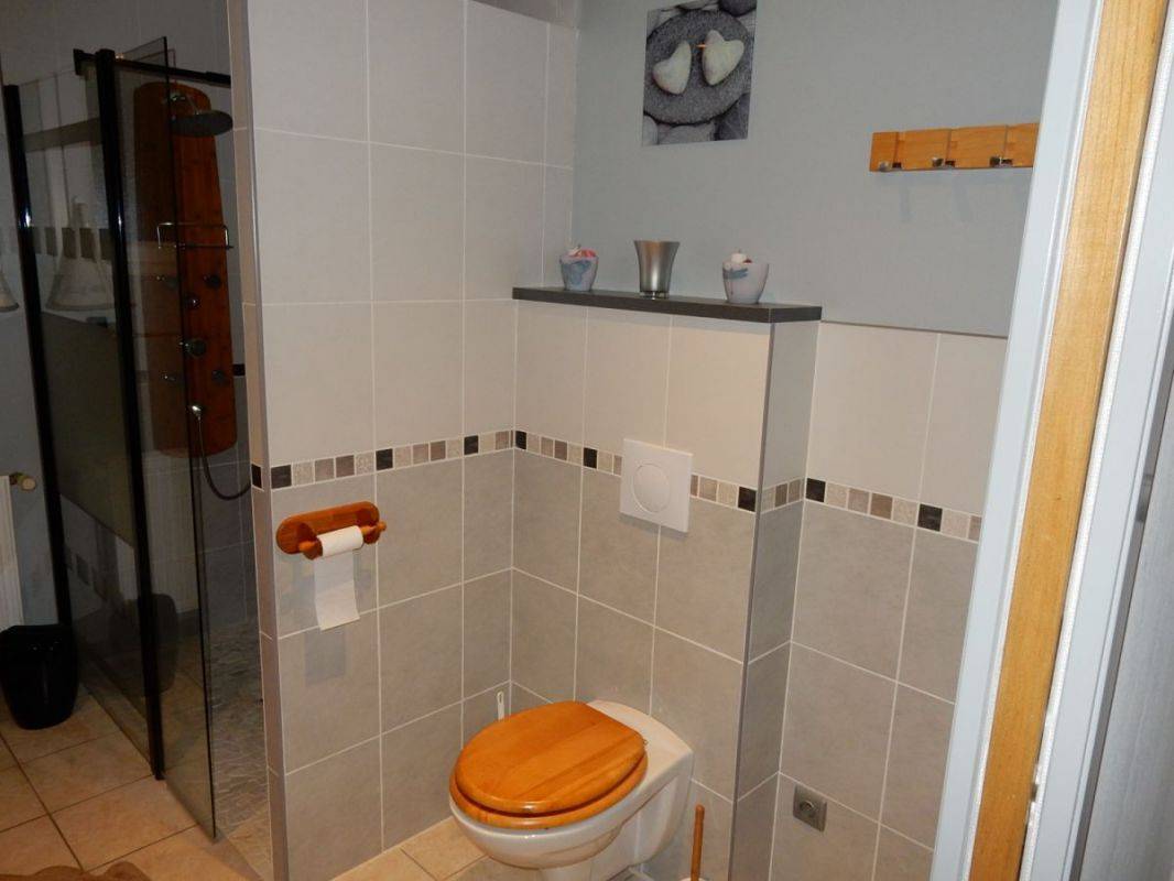 Zu Ihrer Ferienwohnung gehören im Erdgeschoss: ein schönes Wohnzimmer mit ausgestatteter Wohnküche, Badezimmer mit ebenerdiger Dusche und WC. Obergeschoss: 1 Schlafzimmer mit einem 160 x 200 cm großen Bett mit Memoryschaum-Matratze, Badezimmer mit WC. Überdachte Holzterrasse von 18m². Privater Garten mit Bäumen von 1000m². Parkplatz vor der Hütte.
