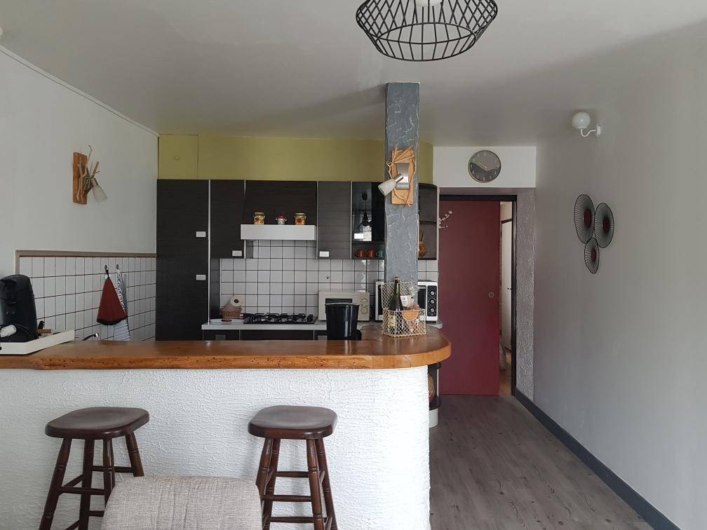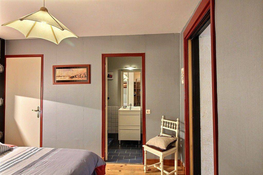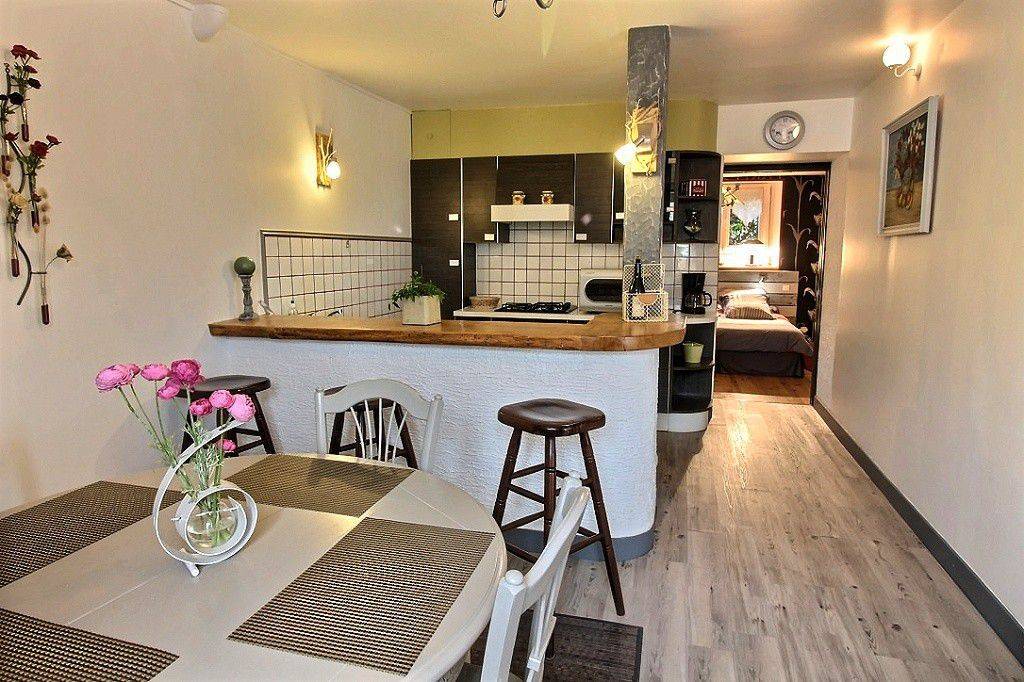 Ihre Ferienwohnung umfasst auf einer Ebene: Wohnzimmer mit Einbauküche, 1 Schlafzimmer mit großem Ankleideraum (2 Betten 90x200, die zusammengestellt werden können), Verbindungstür zum Badezimmer (Dusche und WC). 20m² Terrasse. Parkplätze an der Straße vor dem Haus.