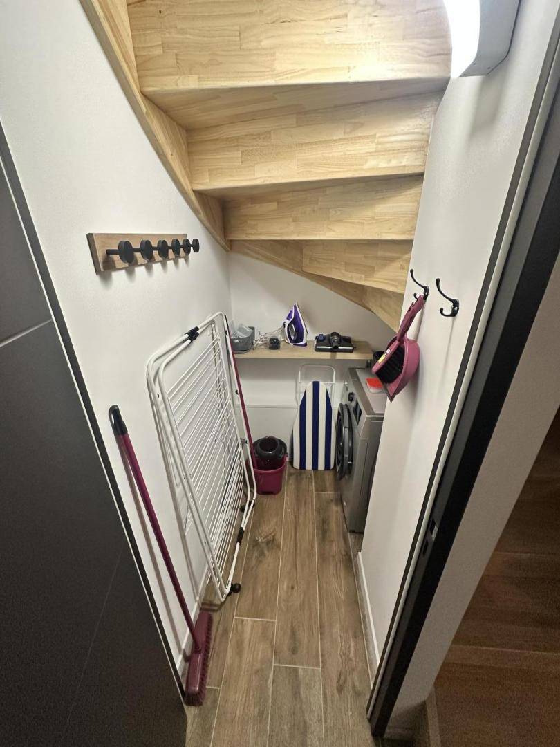 Wohnzimmer mit Einbauküche, Technikraum mit Waschmaschine, Duschbad (ebenerdige Dusche und WC).