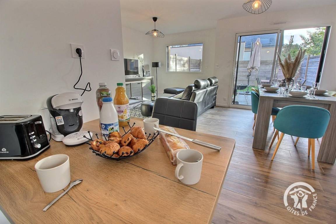 Dies ist eine wirklich privilegierte Lage für alle, die die herrlichen wilden Strände von Guen (1,2 km), Portuais und Lourtuais entdecken möchten, die Sie sogar bewundern können, indem Sie dem GR 34 folgen, der sie überblickt. Herrliche Panoramen zum Genießen, zu jeder Jahreszeit! Wenn Sie gerne wandern, ist dies der perfekte Ort, um zu buchen, da der GR 34 ganz in der Nähe ist und jedes Jahr im Mai der Trail de Landes et Bruyères Tausende von Läufern zusammenbringt... Um in die Innenstadt zu gelangen, müssen Sie nur Gehen Sie die Rue des Plages Sauvages entlang und Sie sind da: Verpassen Sie nicht den Markt am Samstagmorgen!