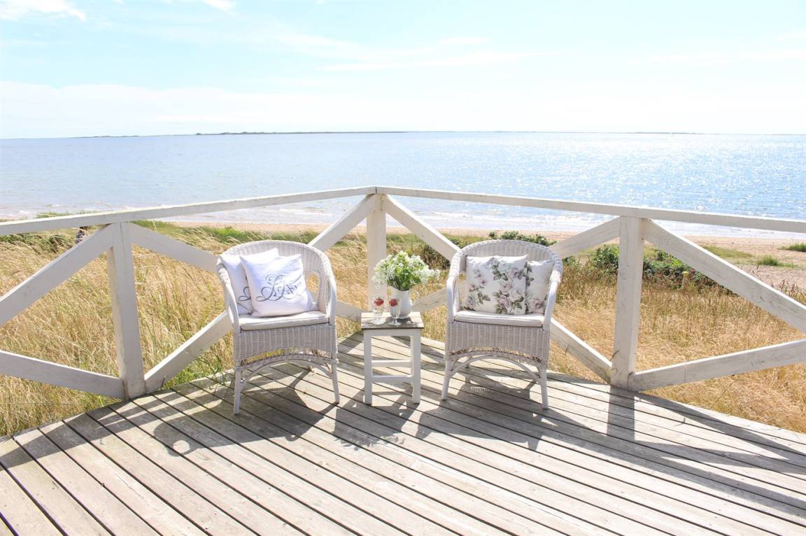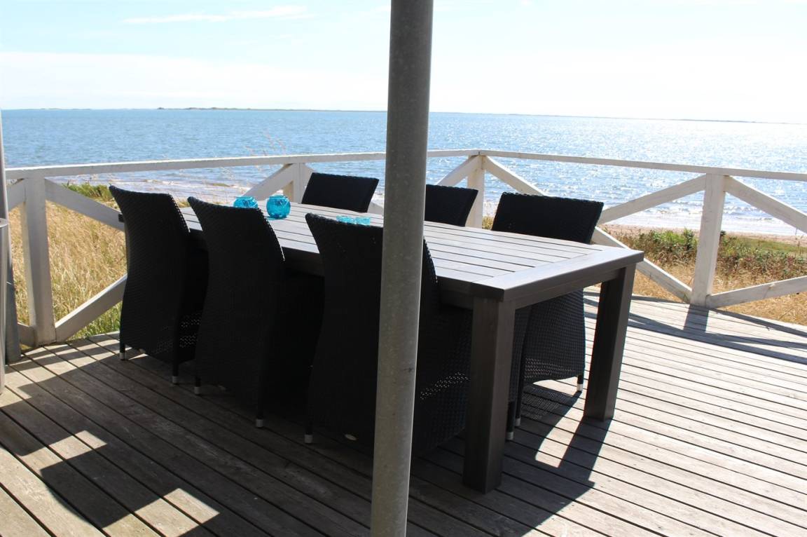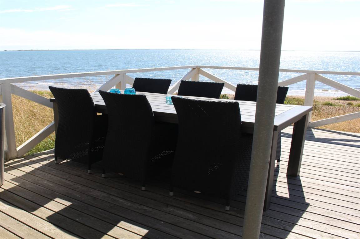 DraußenDie Ferienunterkunft liegt auf einem 1400 m² großen Naturgrundstück. Die Entfernung zum Meer beträgt 30 m. Die nächste Einkaufsmöglichkeit liegt 3000 m entfernt. Es steht ein offenes Terrassenareal zur Verfügung. Parkplatz auf dem Grundstück.