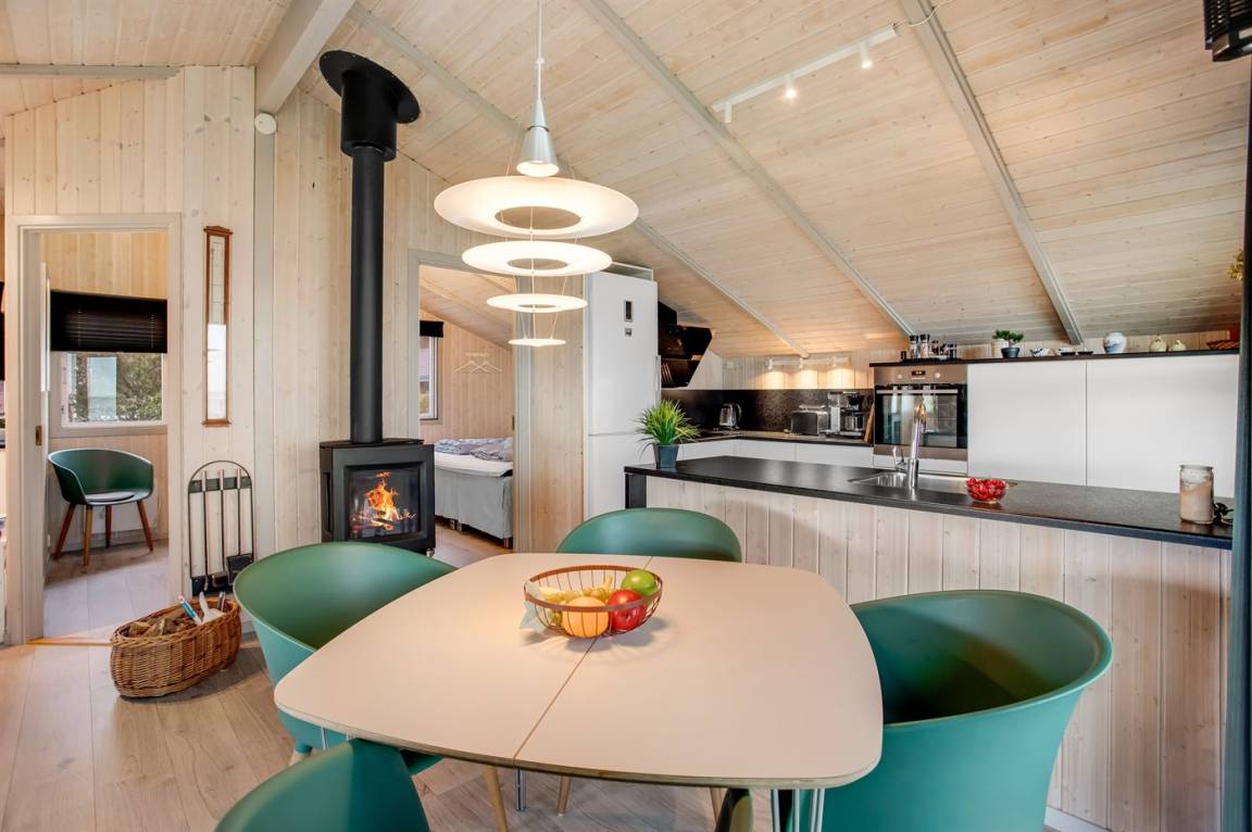 Schöner Küchen-/Essbereich mit Kamin und Zugang zu einer teilweise überdachten Terrasse. Neben der überdachten Terrasse verfügt das Haus über eine herrliche Terrasse auf mehreren Ebenen, auf der Sie die Aussicht in Ruhe genießen und den Sonnenuntergang beim Grillen eines guten Abendessens beobachten können. Im Osten hat das Haus eine Morgenterrasse. In der Umgebung gibt es viele gute Wander- und Radwege.