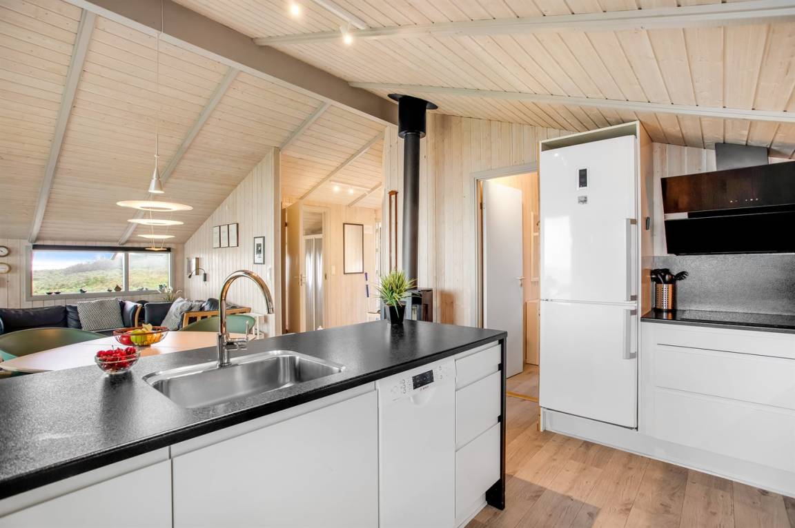 KücheDie Küche ist mit Kühlschrank ausgestattet. Außerdem gibt es 4 Induktions-Kochzonen, Umluftofen, Mikrowelle sowie Geschirrspüler.
