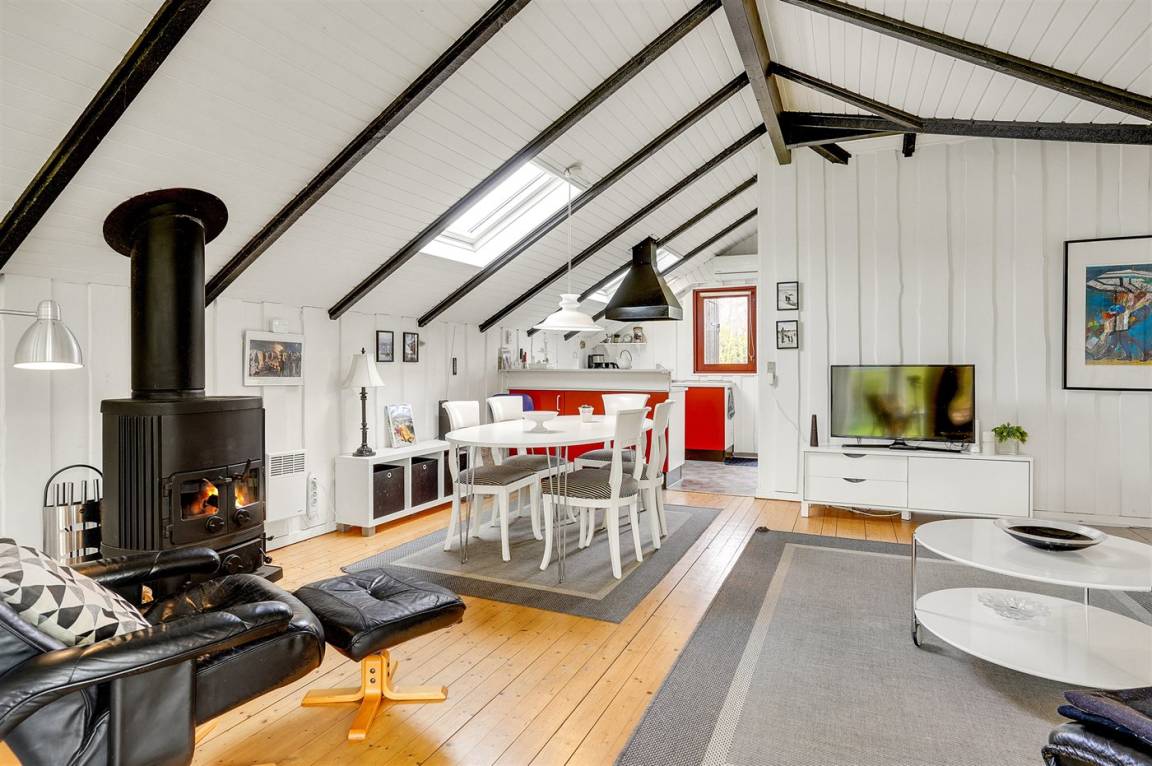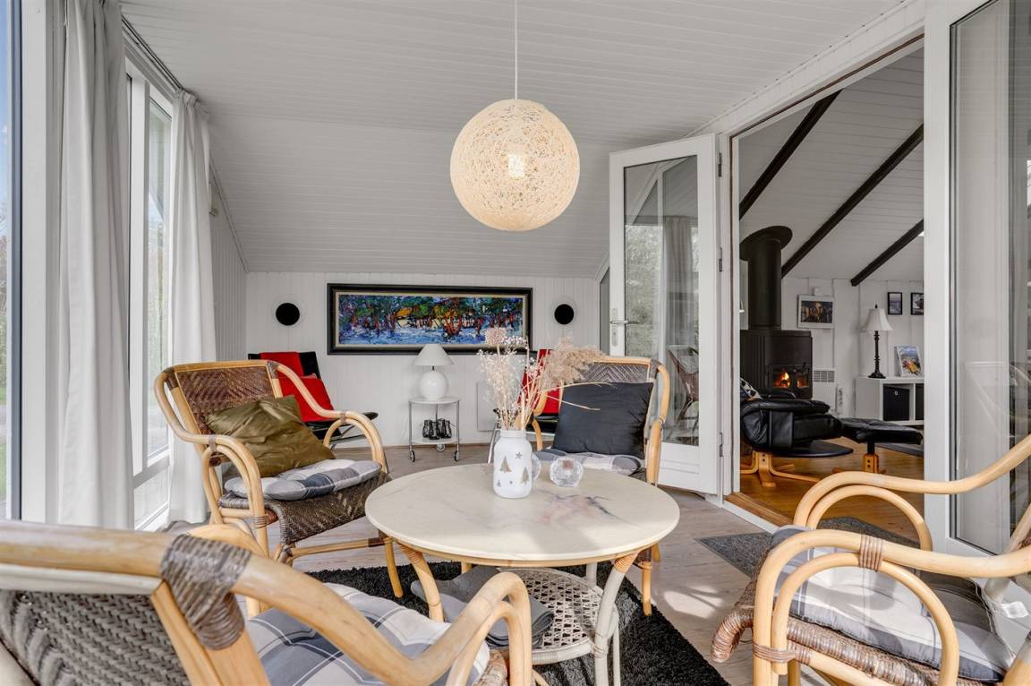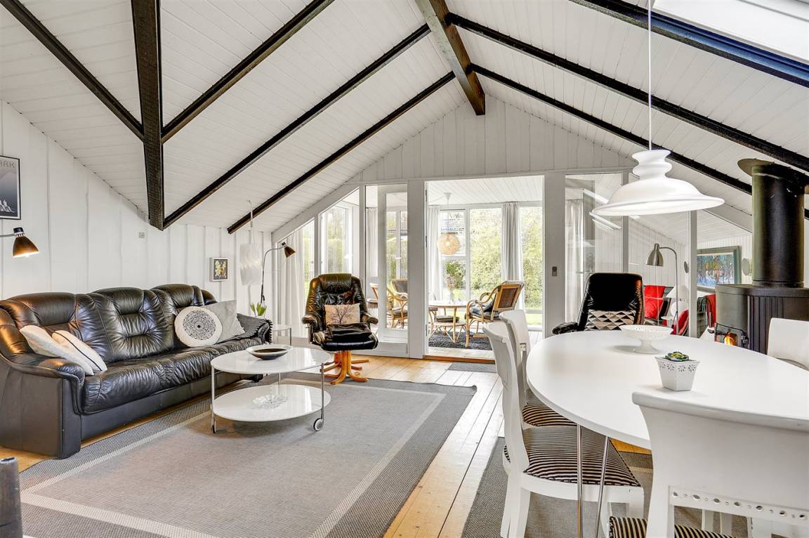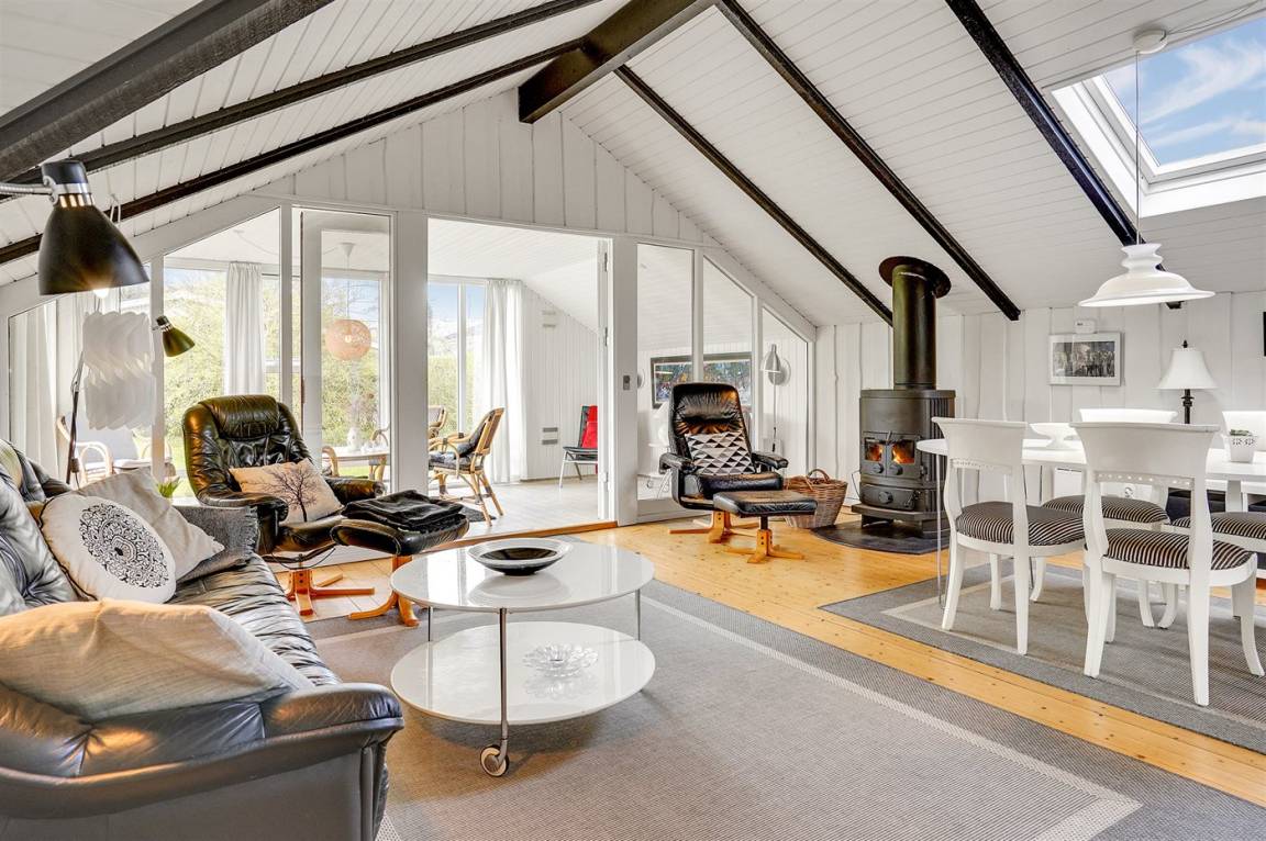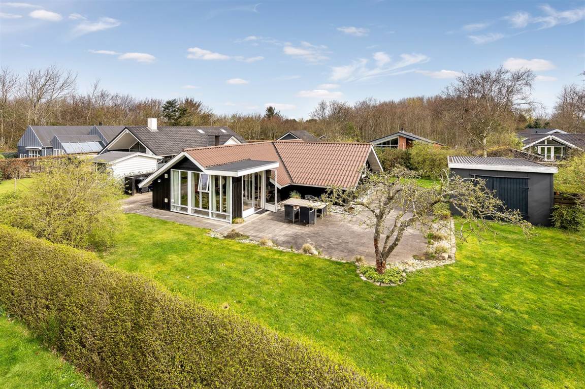 DraußenDie Ferienunterkunft liegt auf einem 825 m² großen Naturgrundstück. Die Entfernung zum Meer beträgt 6000 m. Die Entfernung zum Fjord beträgt 250 m. Es steht ein offenes Terrassenareal zur Verfügung. Es steht ein Carport zur Verfügung. Parkplatz auf dem Grundstück.