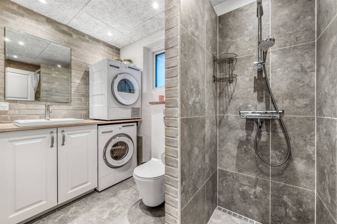 WC und BadEs gibt 1 Badezimmer mit Duschnische und 1 Toilette.