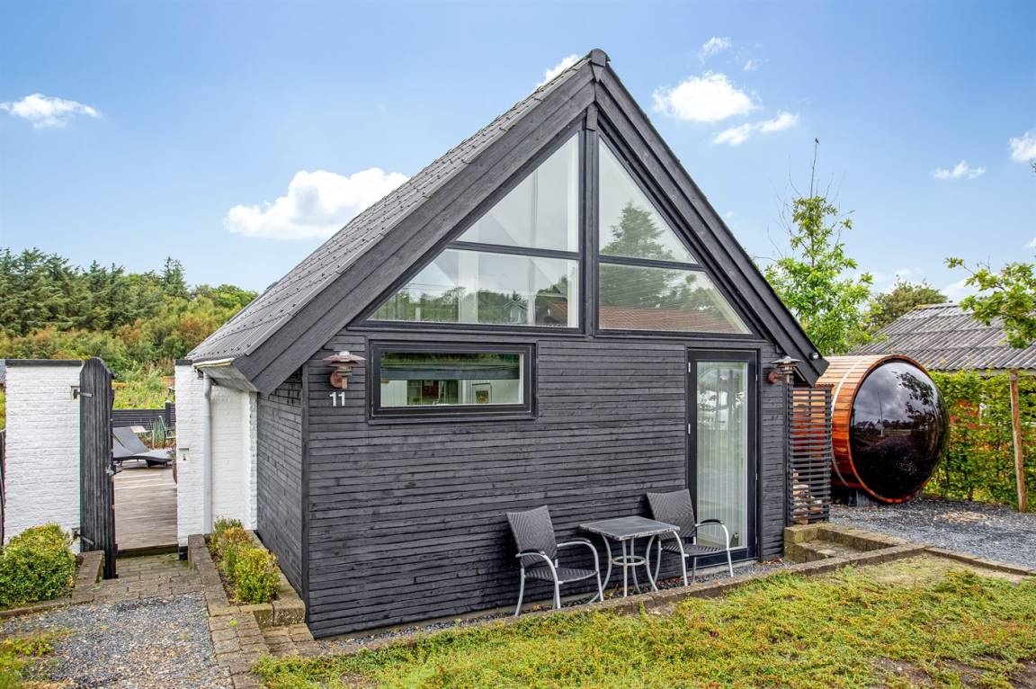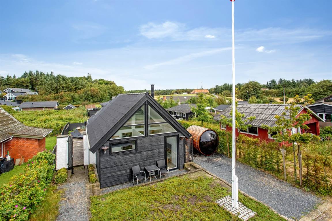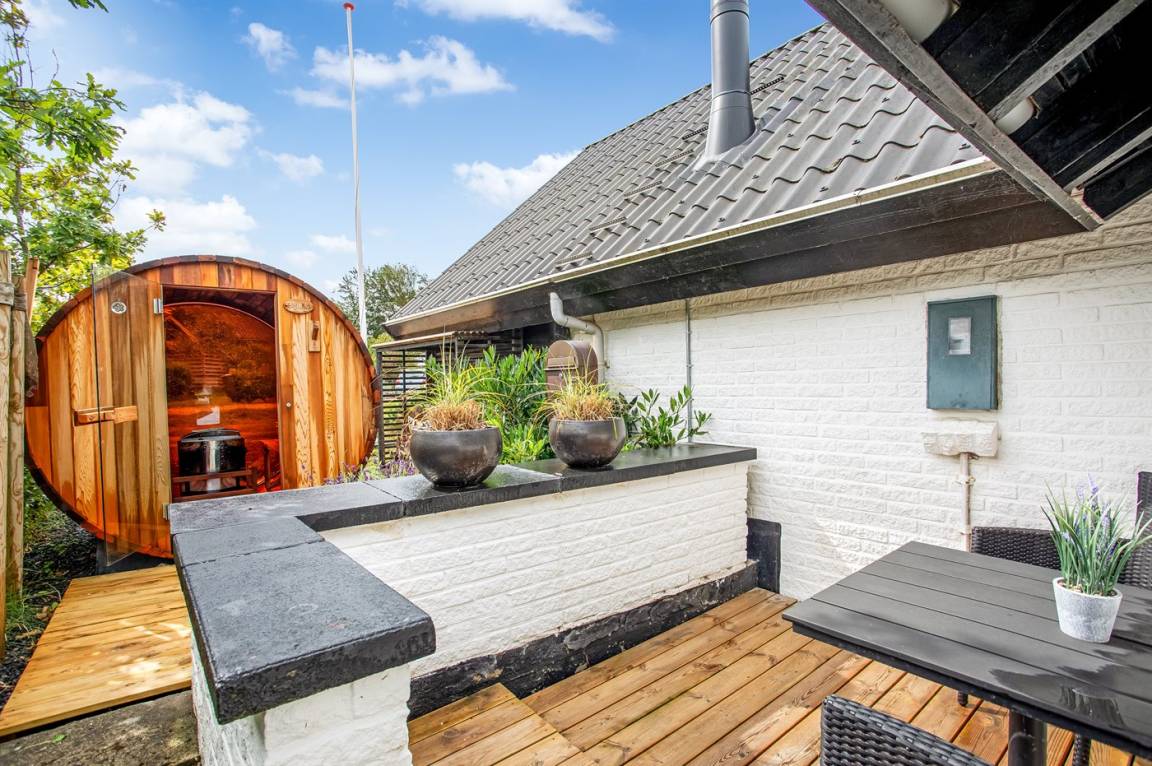 DraußenDie Ferienunterkunft liegt auf einem 280 m² großen Naturgrundstück. Die Entfernung zum Meer beträgt 150 m. Die nächste Einkaufsmöglichkeit liegt 2500 m entfernt. In einem Abstand von 4500 m gibt es einen Golfplatz. Es steht ein 80 m² geschlossenes Terrassenareal zur Verfügung. Lagerfeuerstelle. Außensauna. Gasgrill steht zur Verfügung. Parkplatz auf dem Grundstück.