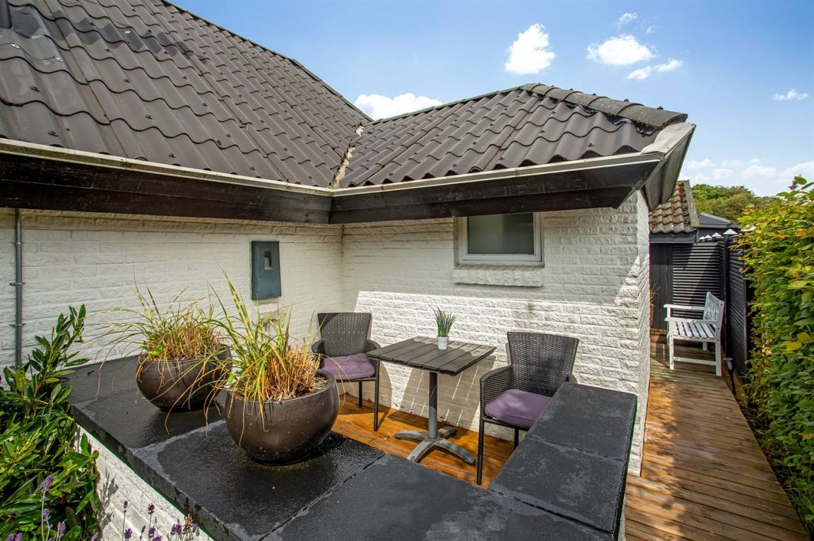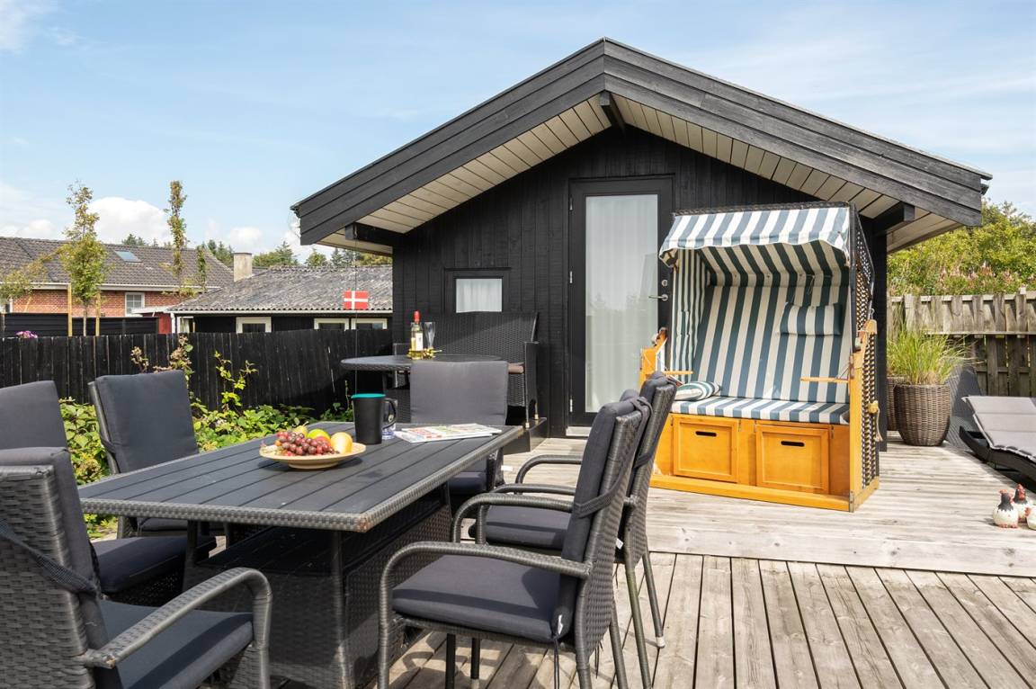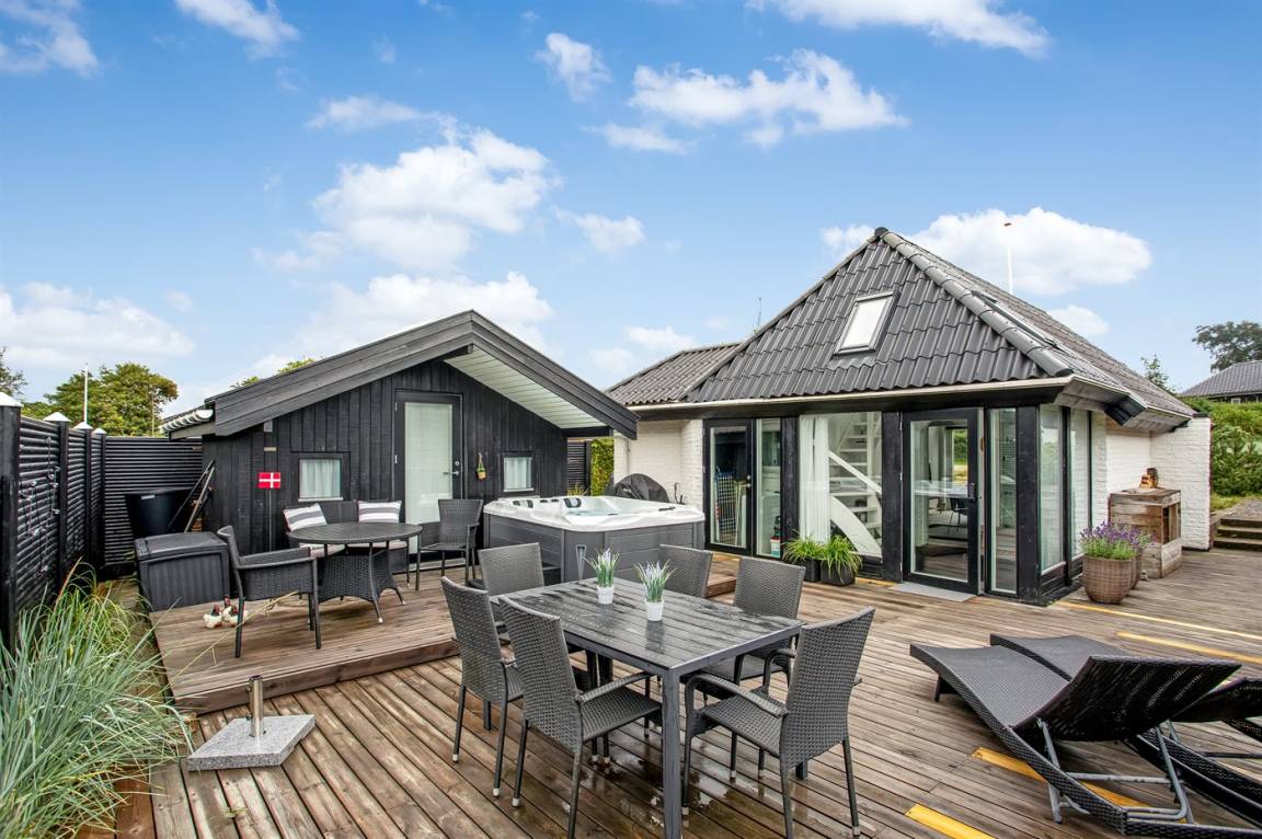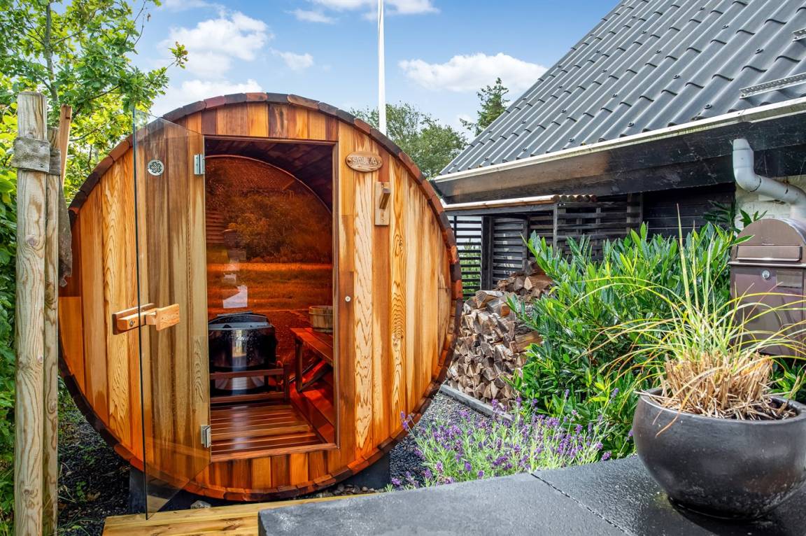 DraußenDie Ferienunterkunft liegt auf einem 280 m² großen Naturgrundstück. Die Entfernung zum Meer beträgt 150 m. Die nächste Einkaufsmöglichkeit liegt 2500 m entfernt. In einem Abstand von 4500 m gibt es einen Golfplatz. Es steht ein 80 m² geschlossenes Terrassenareal zur Verfügung. Lagerfeuerstelle. Außensauna. Gasgrill steht zur Verfügung. Parkplatz auf dem Grundstück.