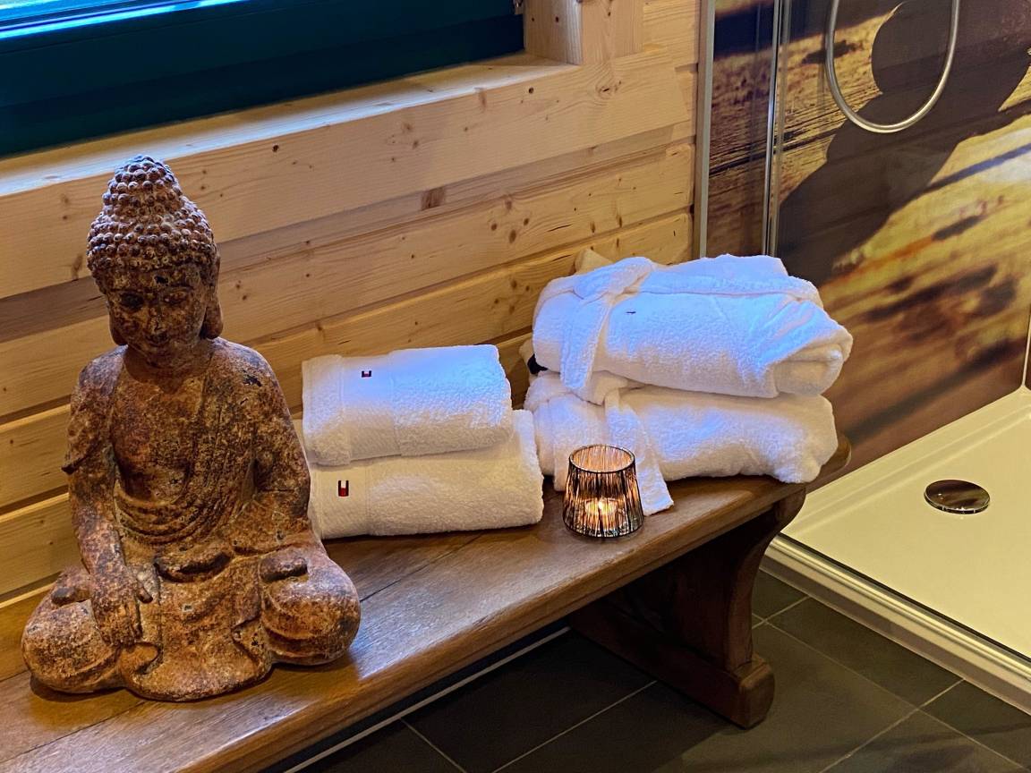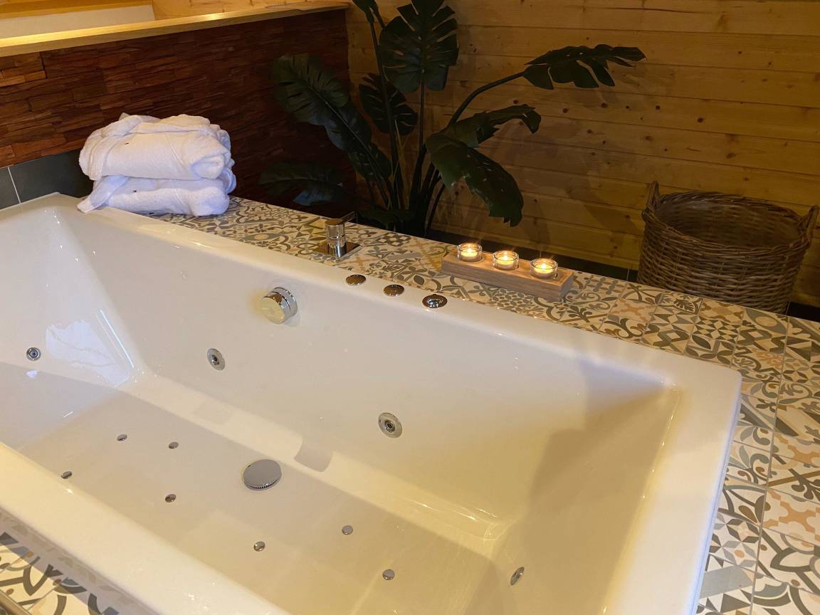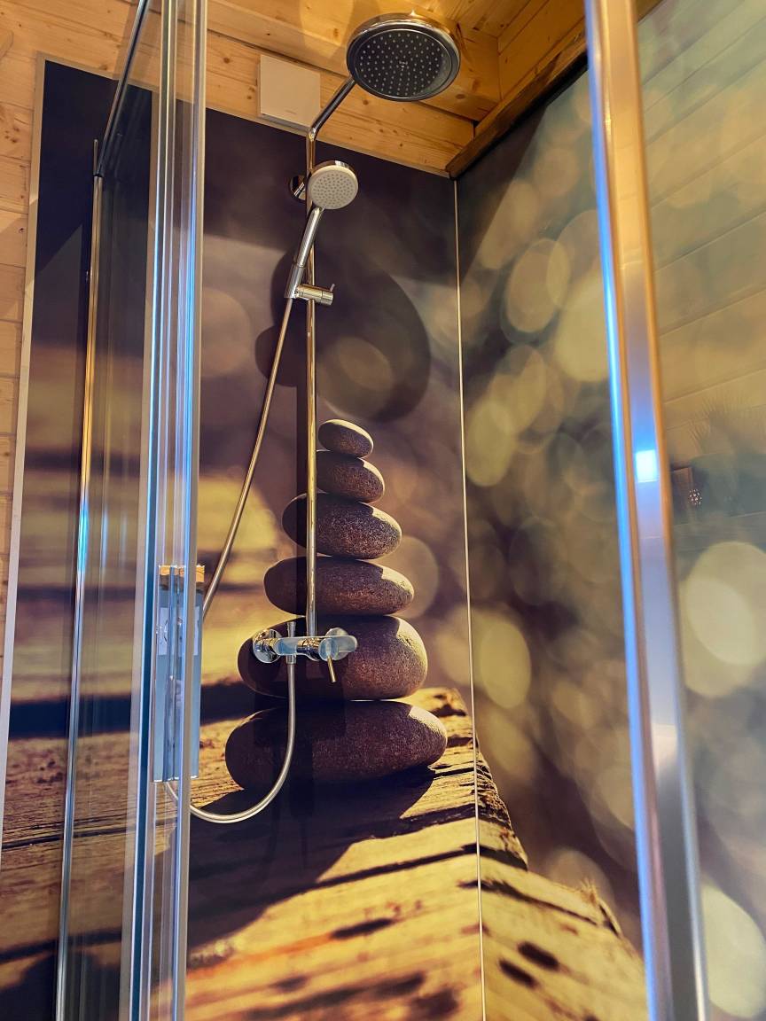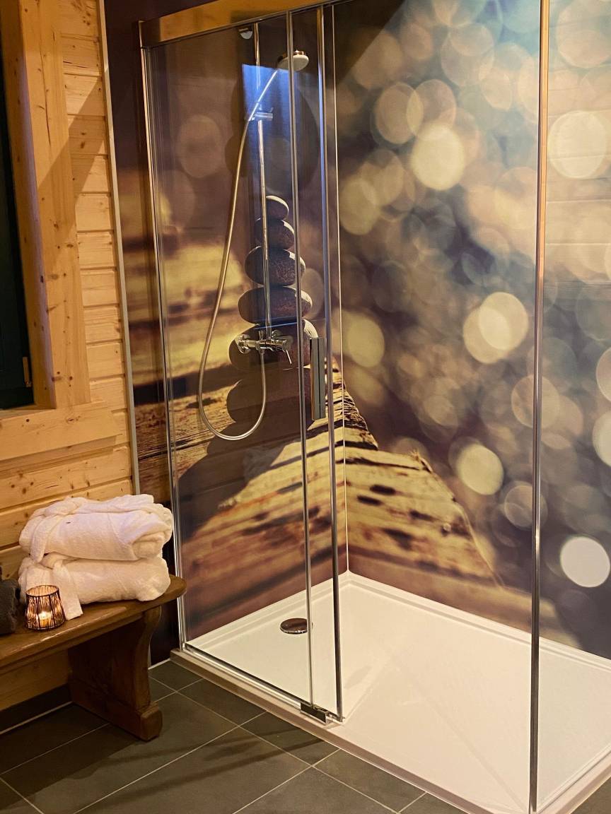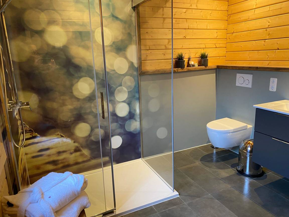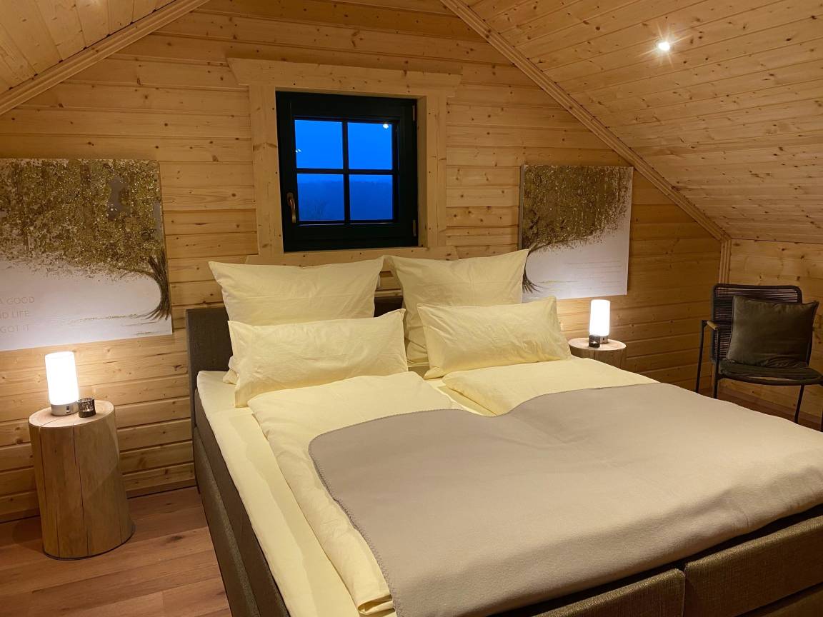 Stylisch, gemütlich, luxuriös, hochwertig, funkelnagelneu ...... Es gäbe noch so viele weitere Adjektive, um das Chalet zu beschreiben. Das Holzhaus ist 100 qm groß, verfügt über einen eigenen kleinen Spa-Bereich mit romantischer Kuschelecke, Sauna und freistehender moderner Whirlbadewanne und eignet sich perfekt für bis zu vier Personen. Das heimische Holz, die natürlichen Materialien und hochwertigen Boxspringbetten sorgen für einen wunderbar erholsamen Schlaf.