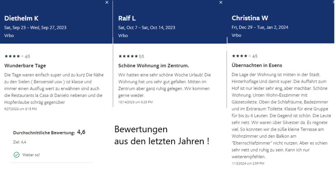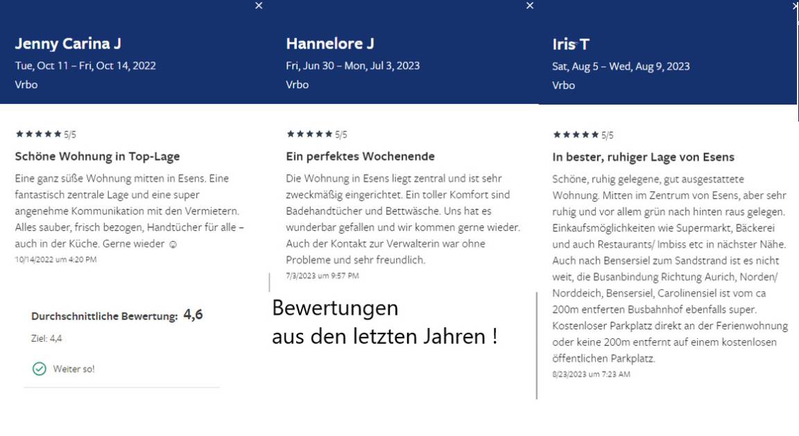 „Die Wohnung ist in einer Top Lage. Der Ausblick vom Balkon auf den Garten ist auch sehr schön Insgesamt waren wir sehr zufrieden. Ich werde mit ziemlicher Sicherheit wieder bei ihnen buchen. Eventuell das gleiche Objekt oder eine andere Wohnung aus ihrem Portfolio. Mit freundlichen Grüßen Sabine“