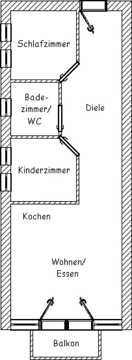 • einer großen Wohnküche mit großer Fensterfront und kleinem Balkon in Richtung Garten.