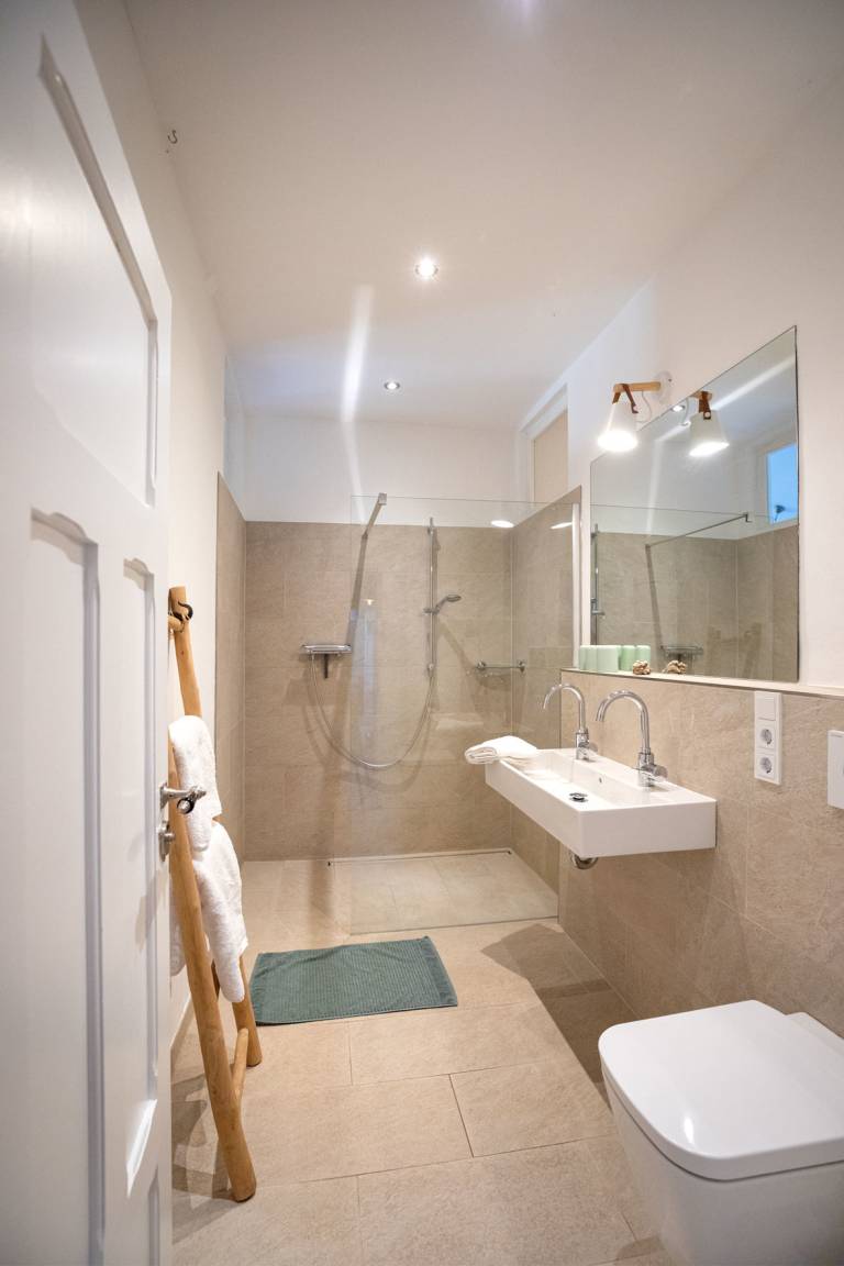 Ihr bevorzugt das entspannte Bad? Oder doch die schnelle Dusche? Beides ist in den zwei neuen, hellen Bädern möglich.