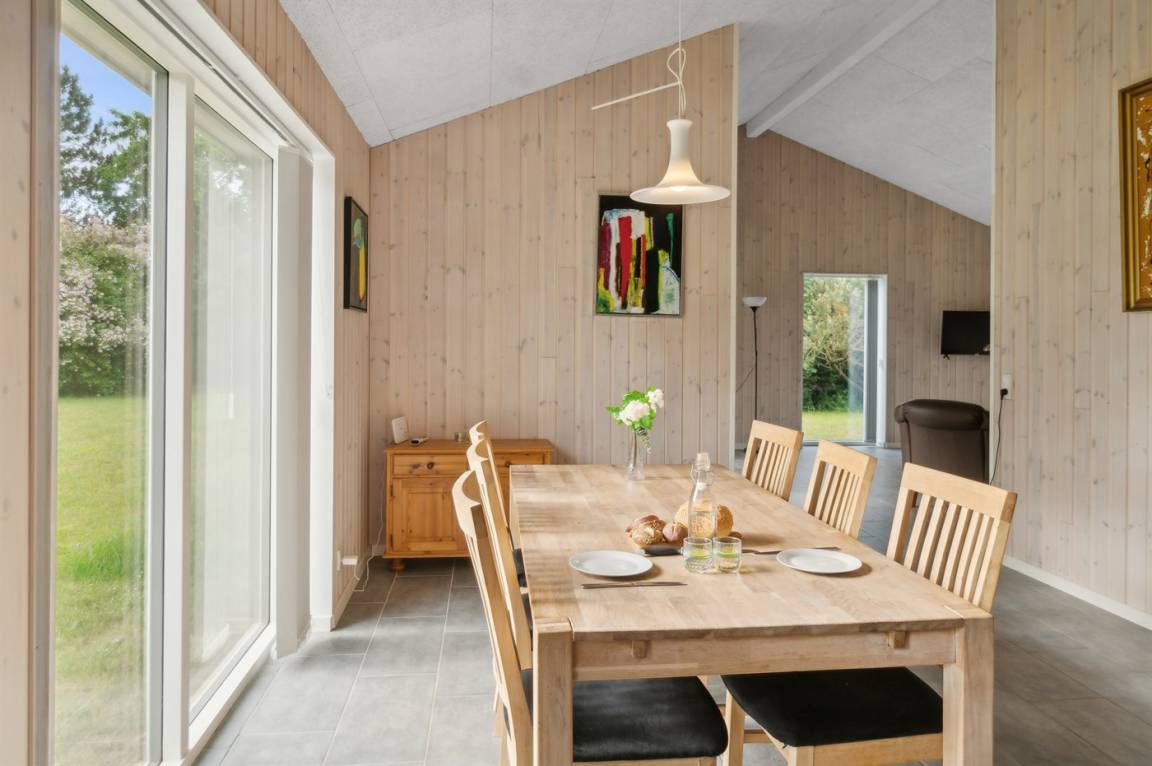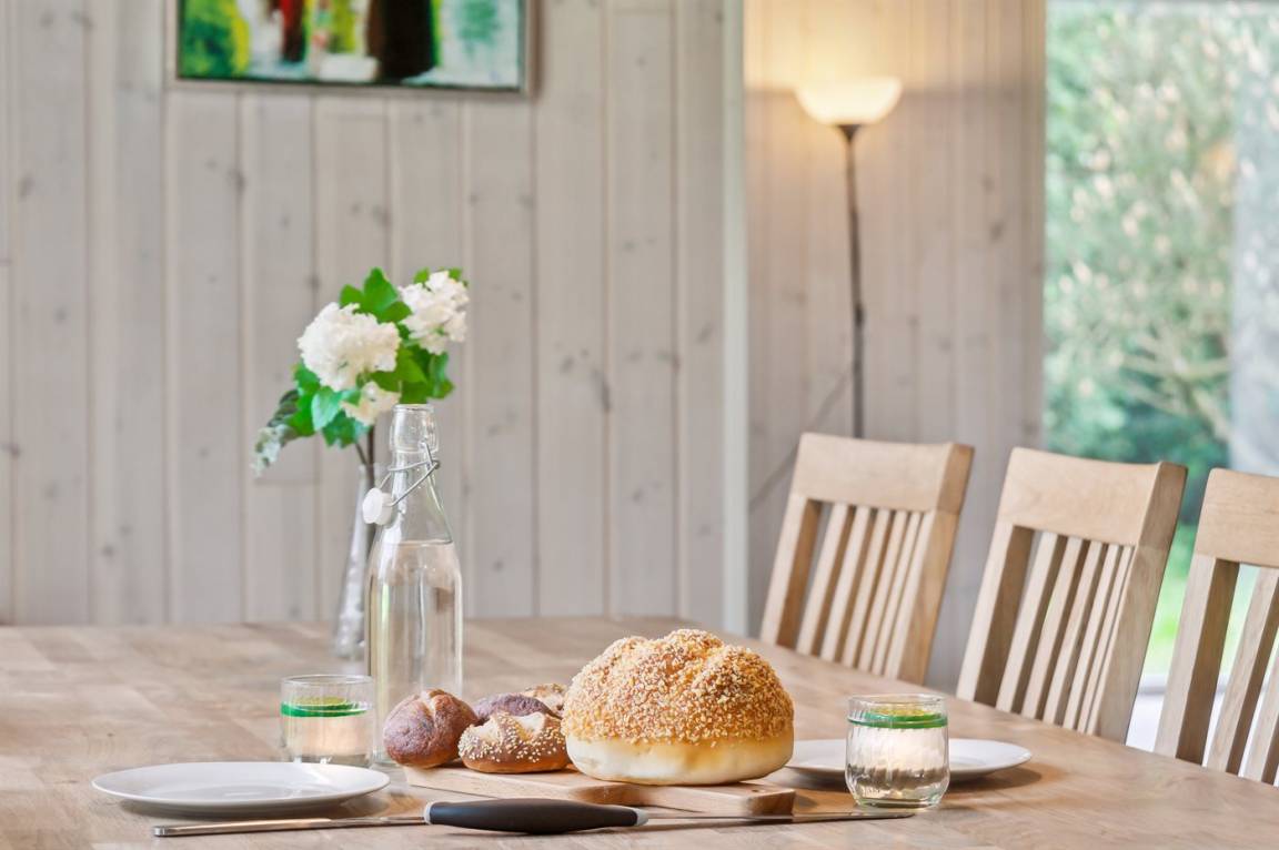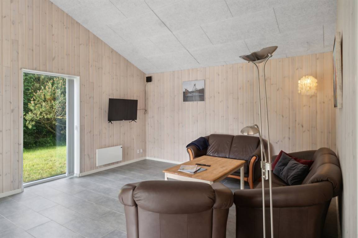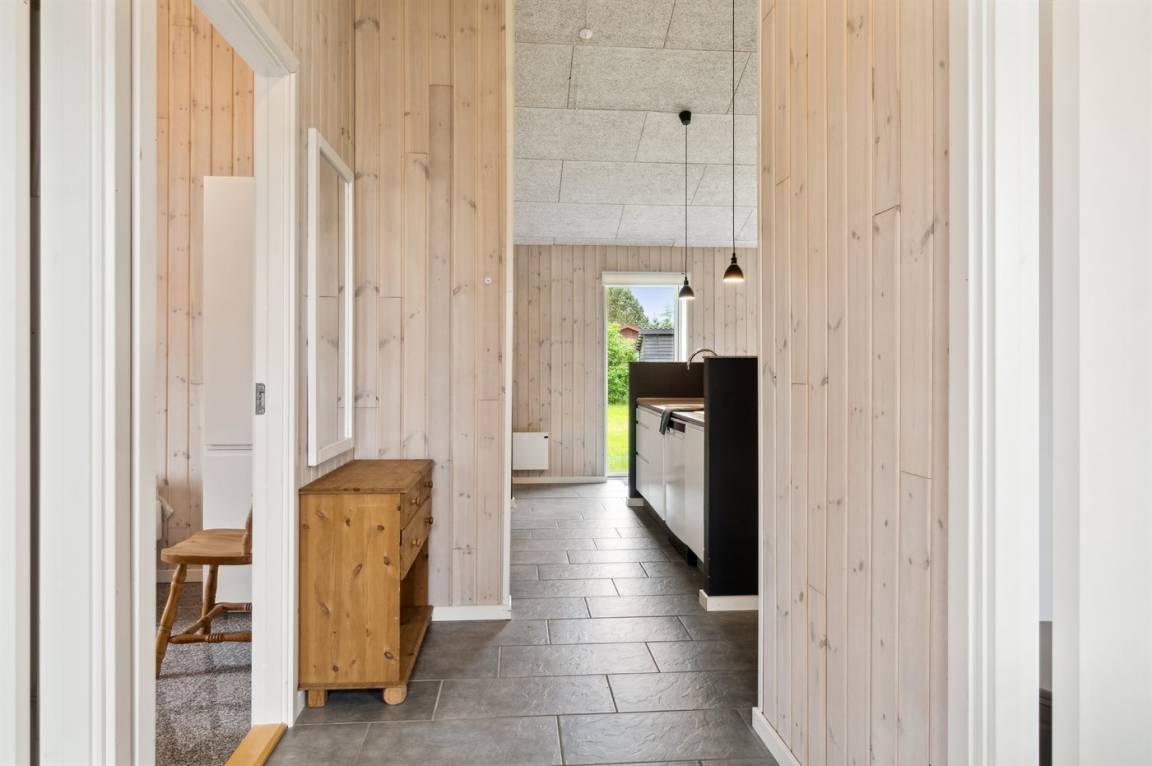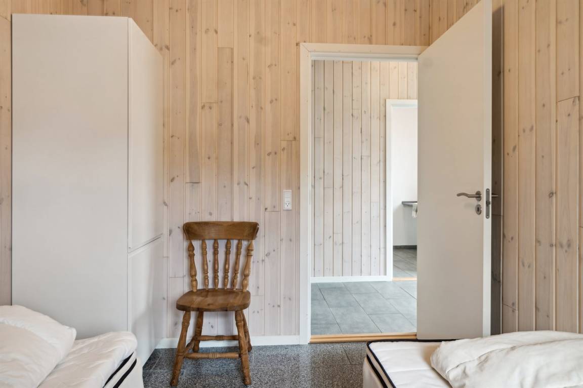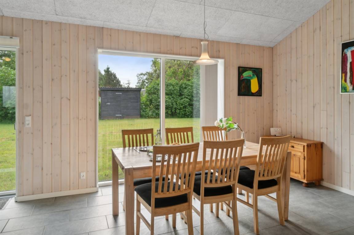 Im Zentrum des Hauses befindet sich das große Küchen- und Wohnzimmer, das den natürlichen Treffpunkt für gemütliches Beisammensein mit Freunden und Familie bildet. Das Haus ist überall hell und geräumig mit Decken bis zum Giebel in allen Zimmern und viel Tageslicht von den großen Fensterfronten. Es gibt 3 gute Schlafzimmer mit jeweils 2 Schlafplätzen. Das Badezimmer verfügt über eine Duschkabine. Im praktischen Hauswirtschaftsraum gibt es eine Waschmaschine. Das Haus wird umweltfreundlich mit einer Luft-Luft-Wärmepumpe beheizt und es gibt Lademöglichkeiten für Elektroautos. Im großen Garten gibt es reichlich Platz zum Spielen und Ballspielen mit den Kindern.