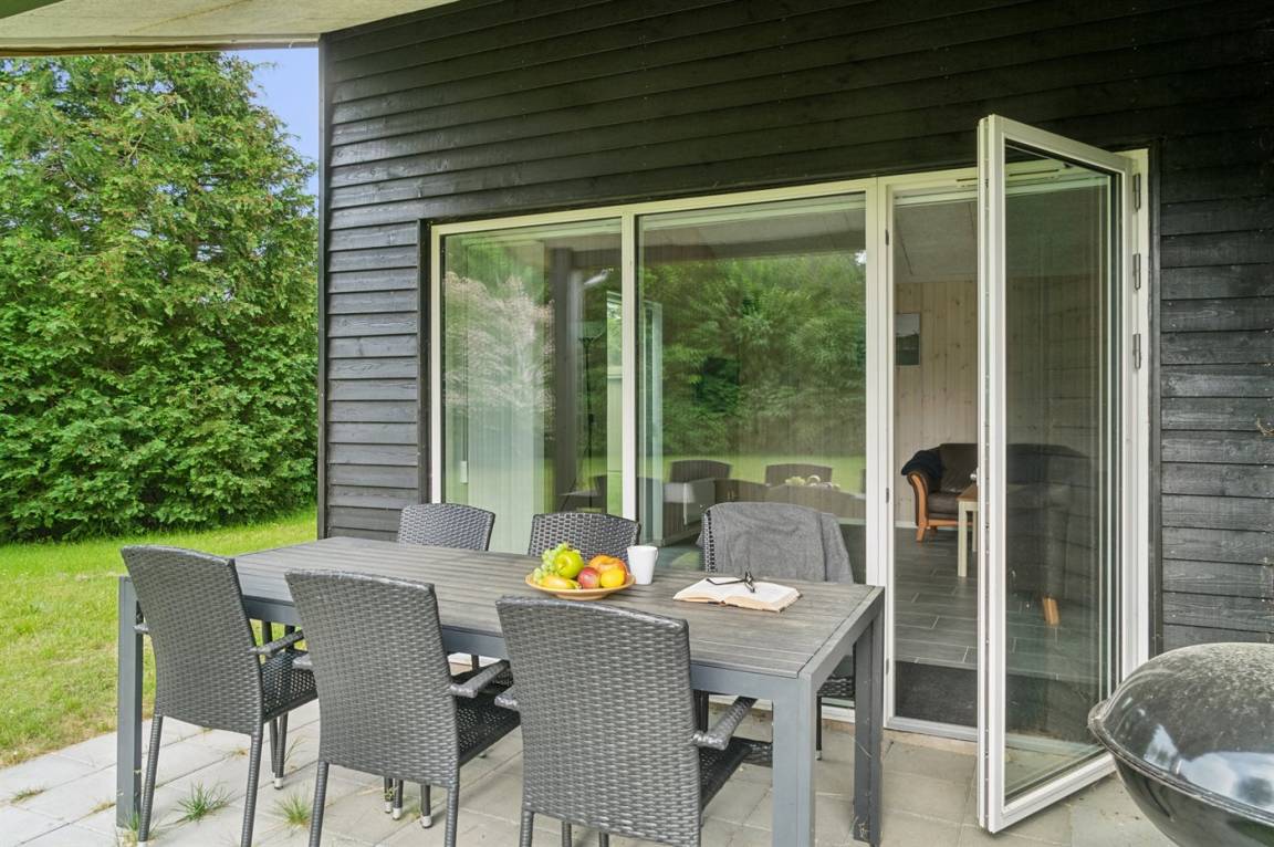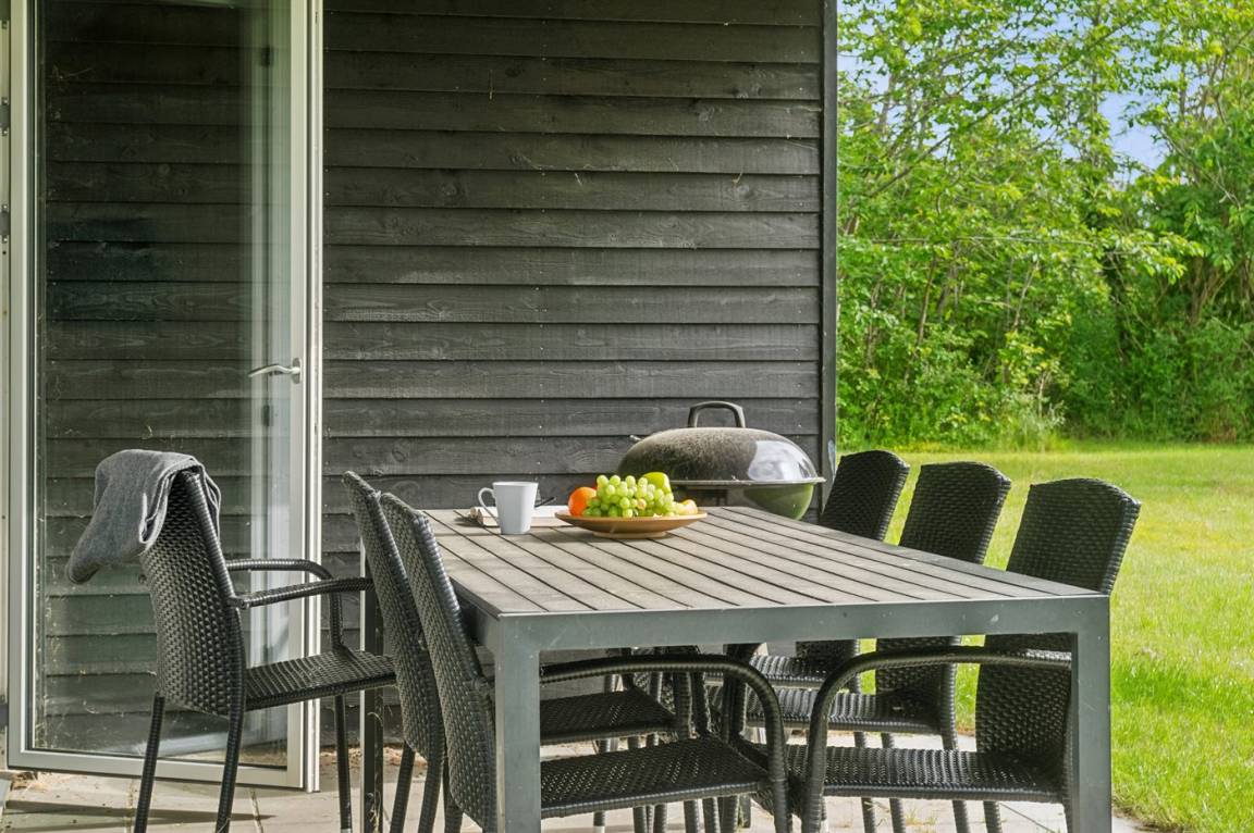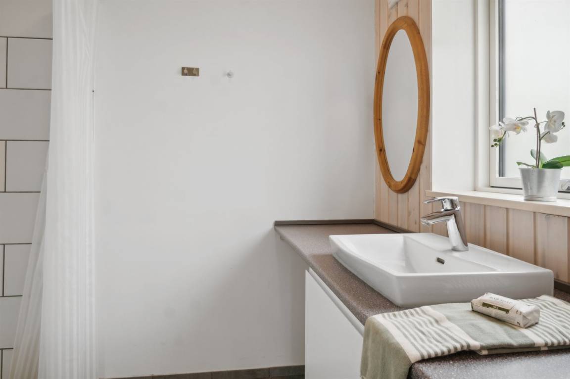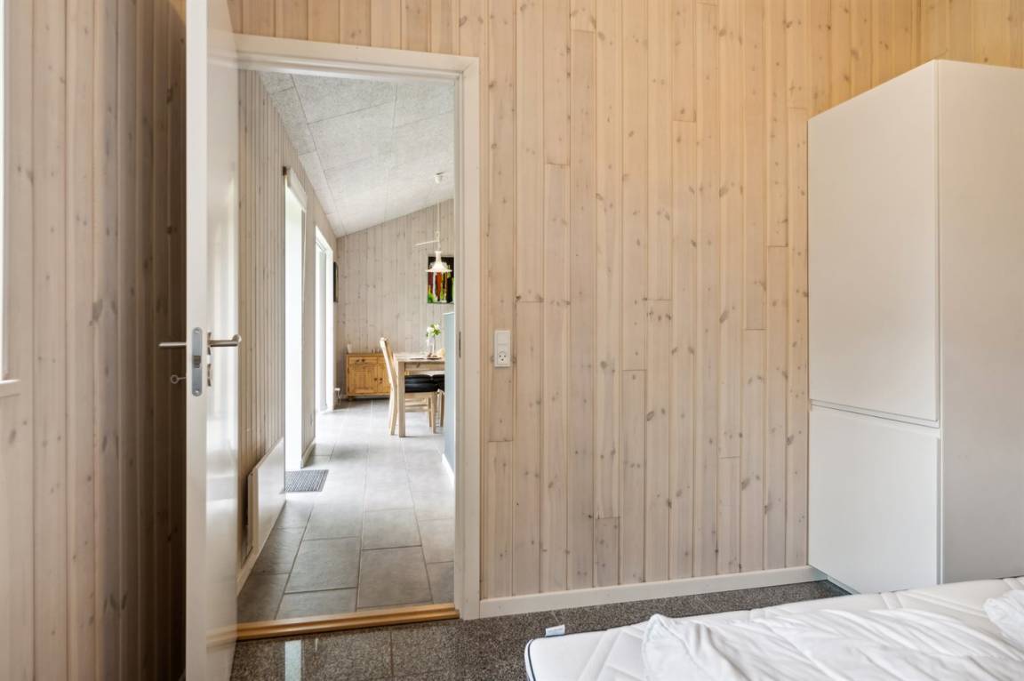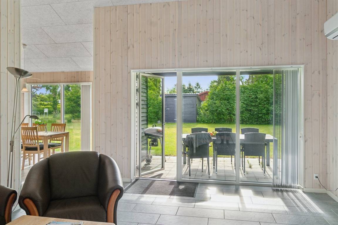 Im Zentrum des Hauses befindet sich das große Küchen- und Wohnzimmer, das den natürlichen Treffpunkt für gemütliches Beisammensein mit Freunden und Familie bildet. Das Haus ist überall hell und geräumig mit Decken bis zum Giebel in allen Zimmern und viel Tageslicht von den großen Fensterfronten. Es gibt 3 gute Schlafzimmer mit jeweils 2 Schlafplätzen. Das Badezimmer verfügt über eine Duschkabine. Im praktischen Hauswirtschaftsraum gibt es eine Waschmaschine. Das Haus wird umweltfreundlich mit einer Luft-Luft-Wärmepumpe beheizt und es gibt Lademöglichkeiten für Elektroautos. Im großen Garten gibt es reichlich Platz zum Spielen und Ballspielen mit den Kindern.
