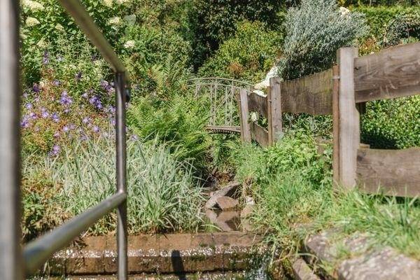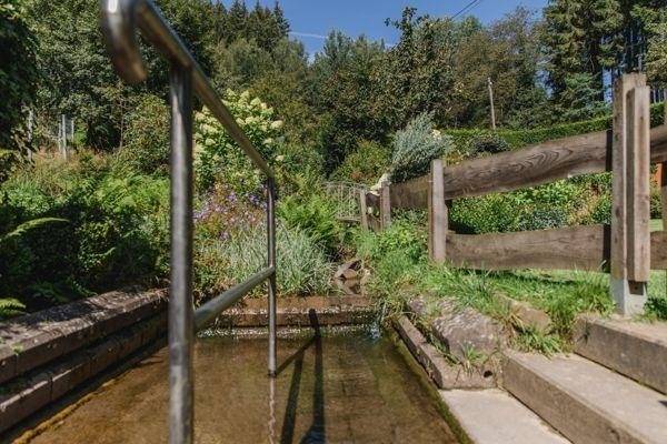 Über eine Außentreppe ist direkt der gepflegte Garten mit Liegewiese, Kneipp-Tretbecken und Grillplatz erreichbar.