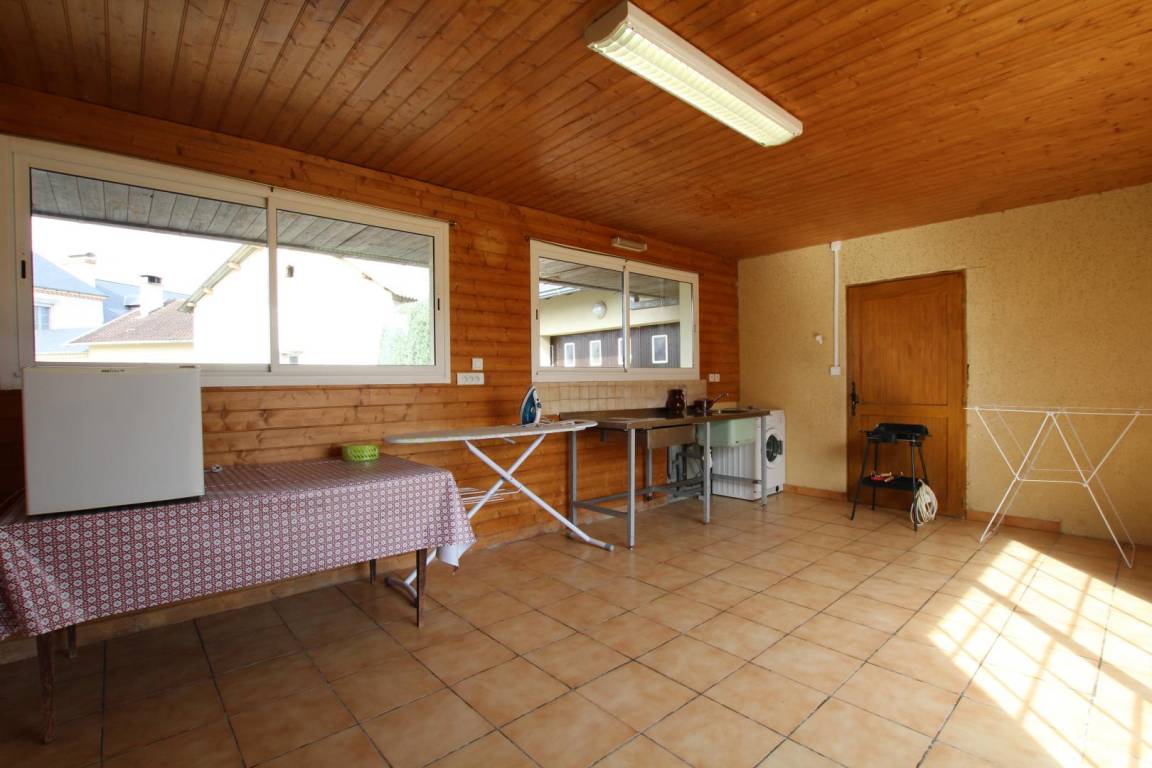 Durch Jalousien geschützte Terrasse, Gartenmöbel, Grill. Eingezäuntes Grundstück. Spielzimmer (Tischtennis, Tischfußball).