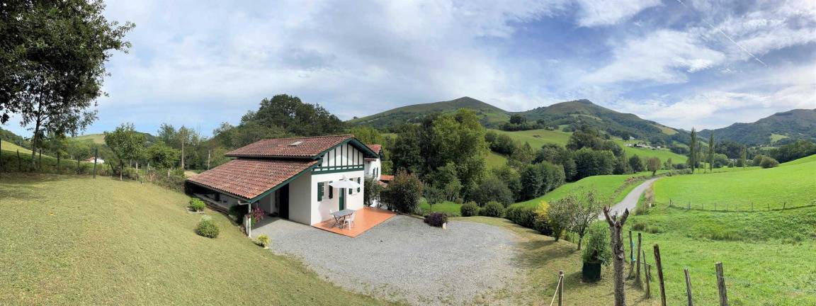 „Vue magnifique depuis le gîte, petit mais très bien agencé. Pour un couple, c'est top ! La maison est bien située, à quelques kilomètres d'Espelette et d'autres sites magnifiques, et non loin de la côte. Que demander de plus? ?“
