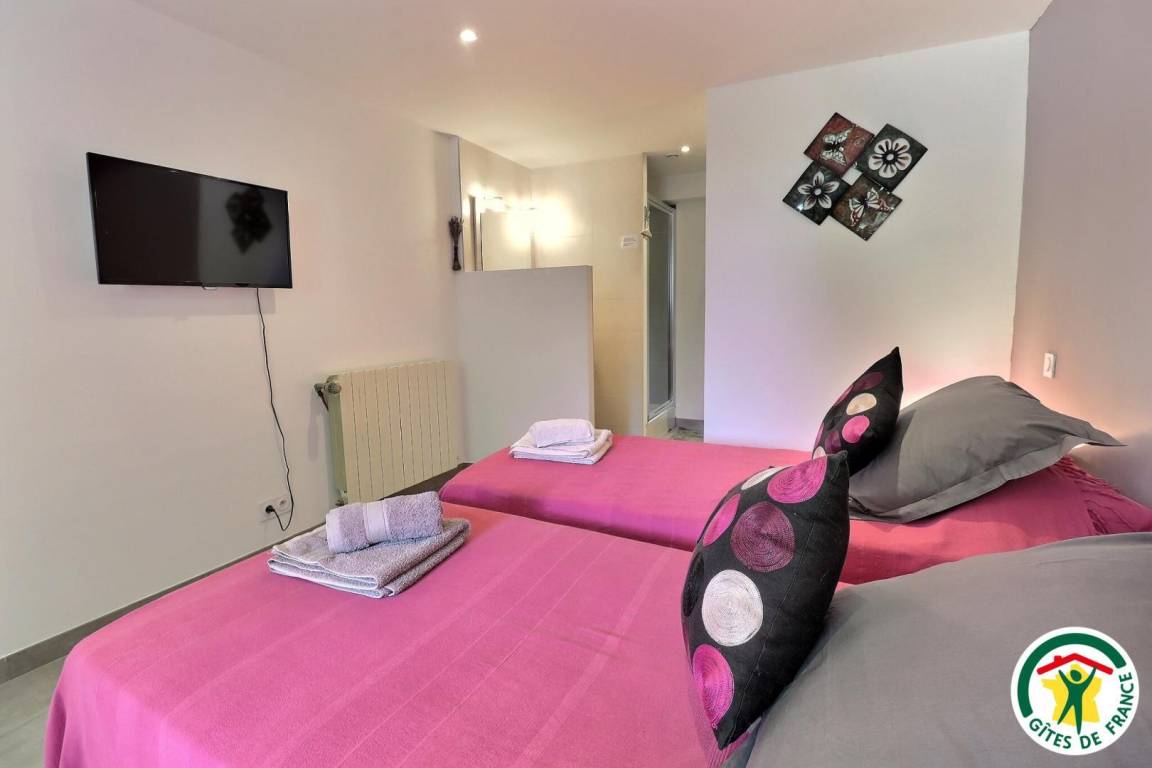 „Très bon accueil sur place. Geste de la propriétaire qui a partagé avec nous sa production de raisins. Merci !Gîte situé au bord d'une route assez passagère et bruyante... Pas de soucis les fenêtres fermées !Des loirs dans le grenier ont notablement perturbé les nuits de ceux qui dormaient à l'étage. Dommage ! La propriétaire appelée pour constater n'a pas été surprise... peut-être faudrait-il envisager des ultra sons, le temps de les éloigner !“