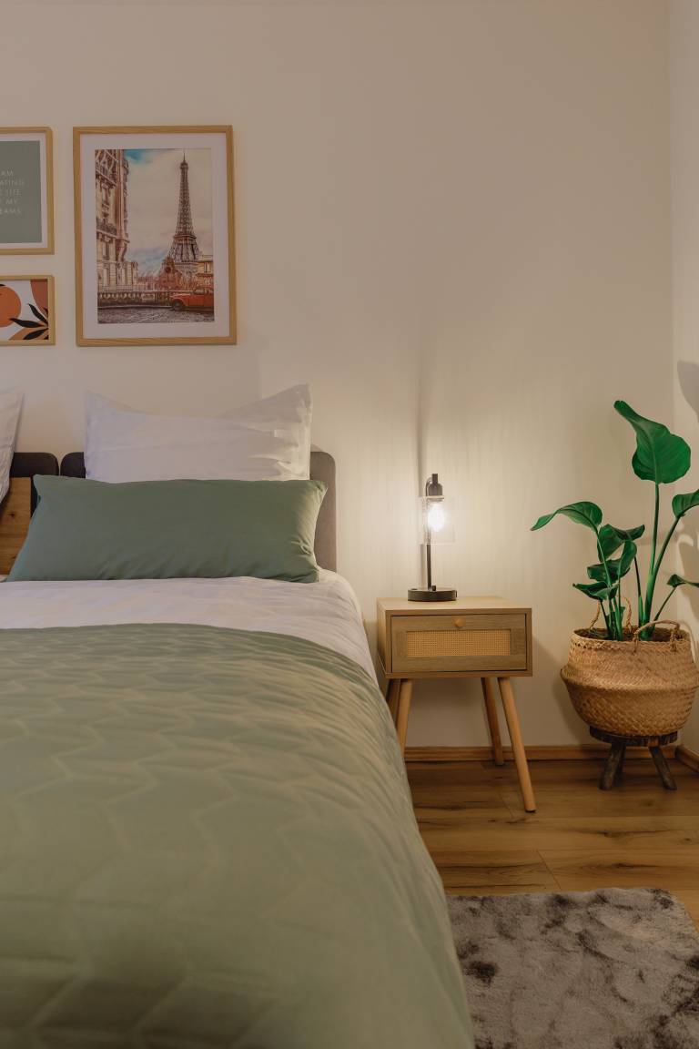 Diese moderne 3Z Wohnung bietet Platz für Gruppen oder Familien & verfügt über 5 Einzel- & 1 Doppelbett. Helle, stilvolle Räume mit hochwertigen Möbeln schaffen eine angenehme Atmosphäre. Die voll ausgestattete Küche & das gepflegte Bad mit Dusche sorgen für Komfort. Im Wohnzimmer erwarten Sie ein großer TV & ein gemütlicher Esstisch. Zusätzlich gibt es einen Balkon, auf dem Sie entspannen können. Selbst-Check-in, Betten & Bettwäsche in Hotelqualität. Kostenloser Parkplatz steht zur Verfügung.