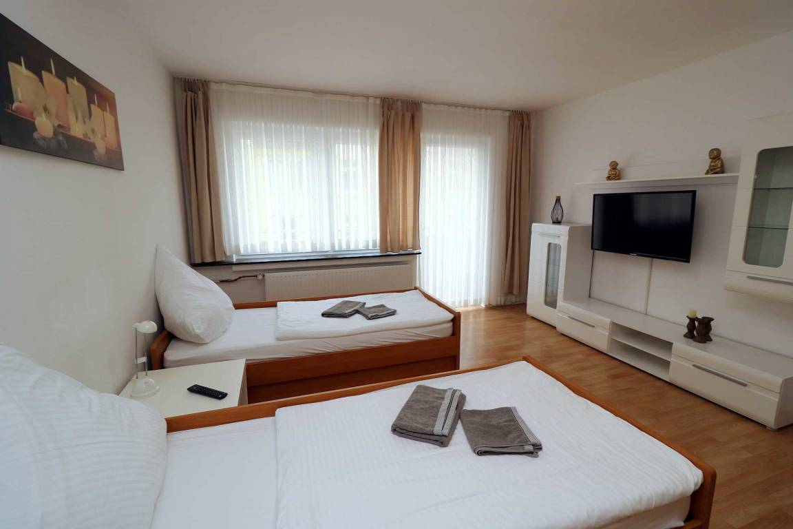 Der Preis gilt für 4 Personen. 2 Gästebetten für 2 zusätzliche Personen können hinzugebucht werden. Alle Preise inkl. MwSt. Das Apartment ist besonders für Monteure und Messbau-Mitarbeiter geeeignet.