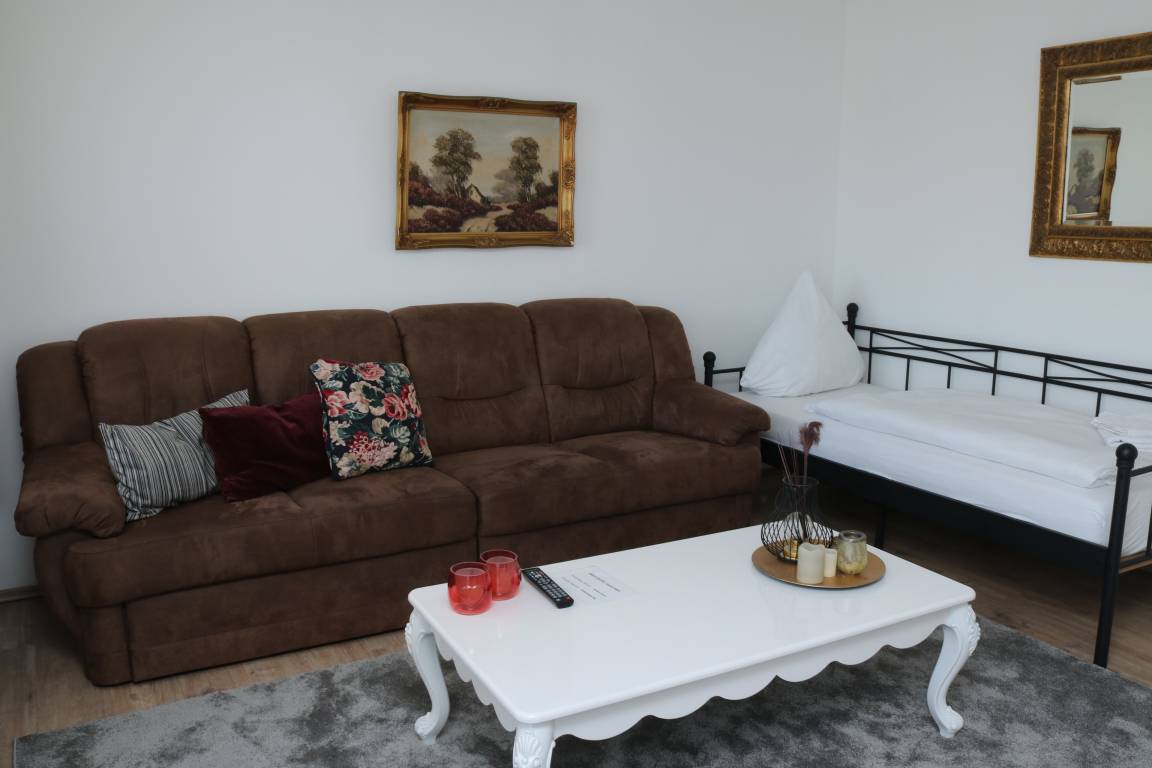 Gemütliches Apartment für 2 - 5 Personen. Schlafzimmer mit Doppeltbett, Schlafsofafunktion und 2 Gästebetten können hinzugebucht werden.