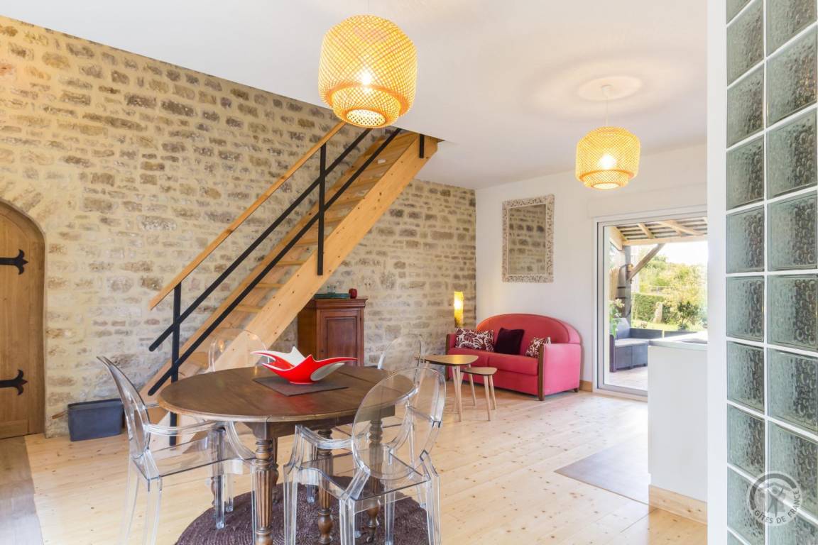 „Le gîte est spacieux et lumineux, doté de tout le nécessaire pour passer un séjour sans soucis matériel. La documentation sur la région est complète et les propositions de promenades, randonnées, musées, sites à visiter... sauront satisfaire tous les goûts et toutes les envies. Son emplacement est idéal pour qui veut retrouver le calme et les couleurs de la campagne tout en pouvant aller prendre un café (ou l'apéro) au bourg à pied (8 mn).Les oiseaux ne sont pas en reste et offrent sans compter leurs meilleurs récitals. Un pic-vert nous a même fait l'honneur de sa présence ainsi qu'un chevreuil. La terrasse couverte, équipée d'une table pour les repas et d'un salon de jardin, est un plus indéniable et appréciable. Cerise sur le gâteau, une enceinte bluetooth est également à disposition. Nous avons été accueillis chaleureusement et en toute simplicité: On se sent d'emblée à l'aise, comme si nos hôtes étaient en fait de vieilles connaissances. Toujours disponibles, ils ont su être à l'écoute. Nous sommes rentrés ravis de notre escapade.“