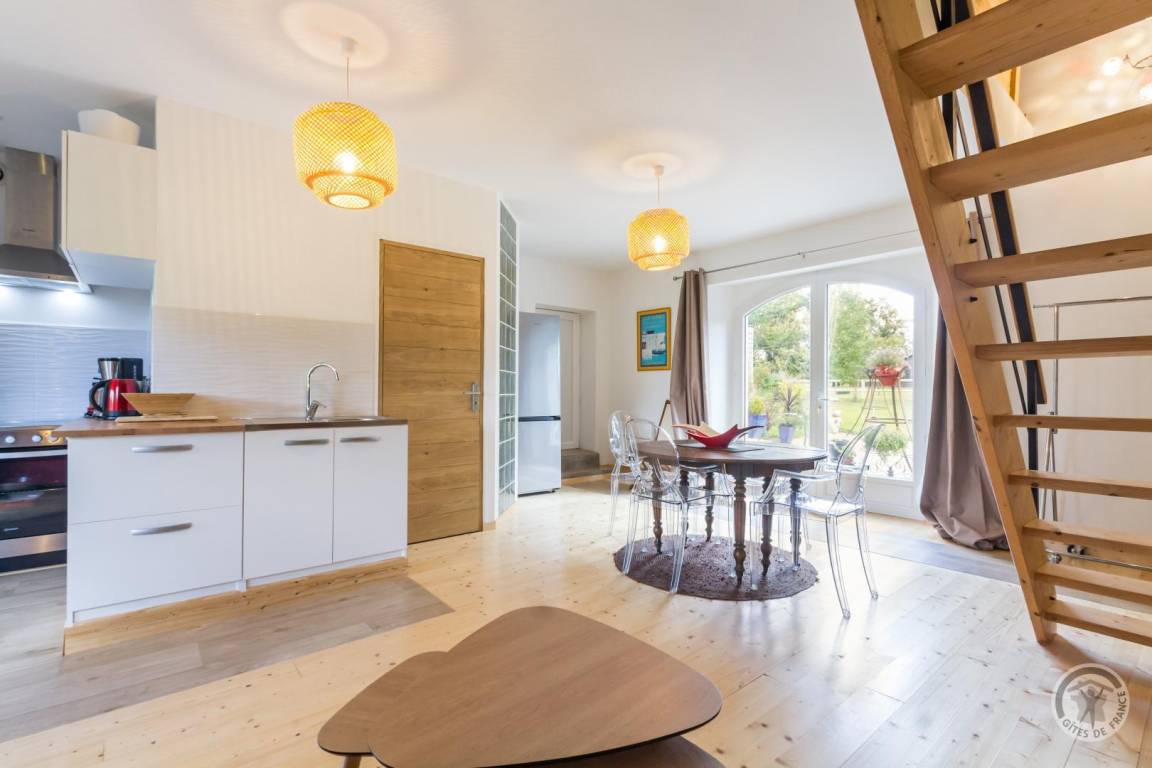 „Gite neuf, lumineux et spacieux, très agréable, avec tout l'équipement nécessaire. Très bonne literie. Très bon emplacement, à la fois au calme complet mais tout de même près des grands axes pour rejoindre facilement aussi bien les plages que les lieux historiques. Accueil très chaleureux de la part des propriétaires Yvan et Maryse. Ce gite mériterait en fait 3 épis. Nous le recommandons sans hésitation.“