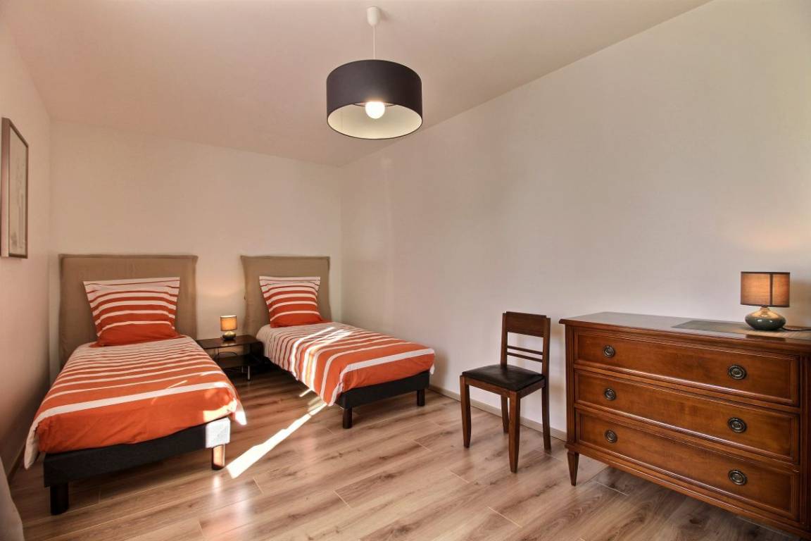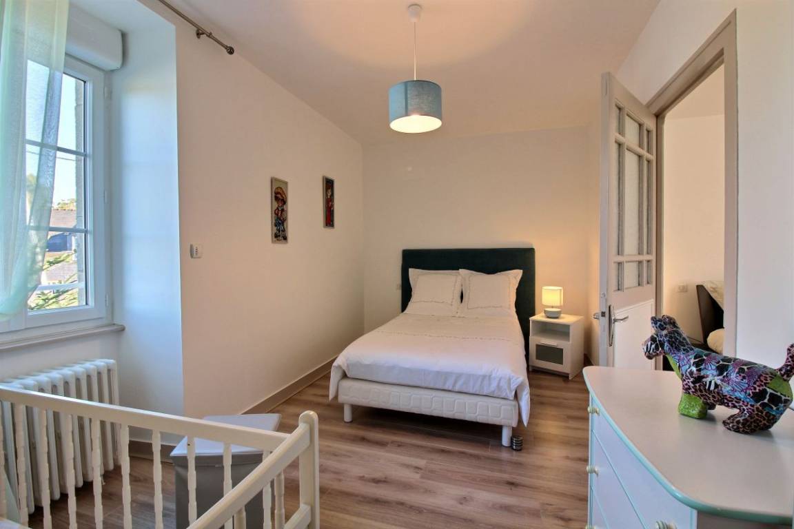 Ihre Ferienwohnung umfasst im Erdgeschoss: großes Wohnzimmer, Wohnzimmer, separate Einbauküche, Badezimmer (schöne Dusche mit WC). Obergeschoss: 4 Schlafzimmer: 1 Schlafzimmer (1 Bett 160 x 200) in Verbindung mit 1 Schlafzimmer (1 Bett 120 x 190 + Kinderbett), 1 Schlafzimmer (1 Bett 140 x 190) und 1 Schlafzimmer (2 Einzelbetten 80 x 200), Badezimmer (Hufbad) und separates WC. Waschmaschine im Badezimmer. Großer Innenhof und privater Garten von 150m². Telearbeitsplatz in einem Schlafzimmer im Obergeschoss eingerichtet.