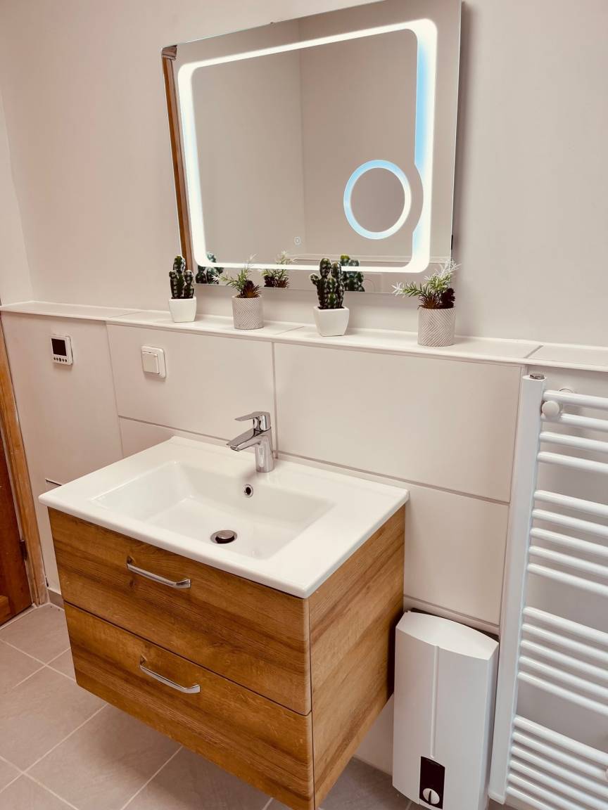 Der Kaminofen sorgt für wohlige Wärme im gesamten Haus. Brennholz und Anzünder sind bereits als Grundausstattung vorhanden. Zusätzlich stehen Ihnen in allen Räumen Elektro-Heizungen bzw. Elektro-Fußbodenheizungen zur Verfügung – ideal für jede Jahreszeit.