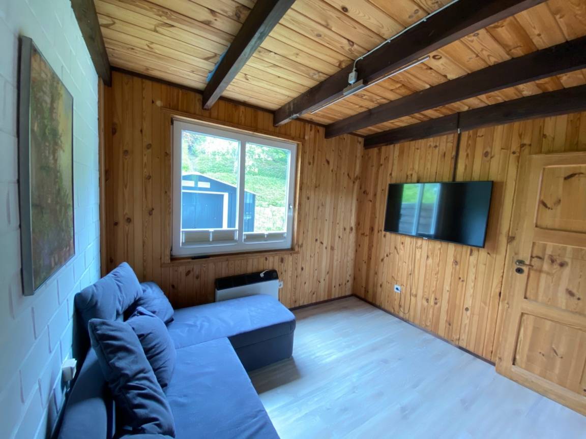Der lichtdurchflutete Wohnraum überzeugt mit einer bequemen Sitzlandschaft, einem Essplatz für 5 Personen, großem Smart-TV und einem Kaminofen für gemütliche Abende. Die Sitzlandschaft kann zusätzlich als Schlafgelegenheit genutzt werden.
