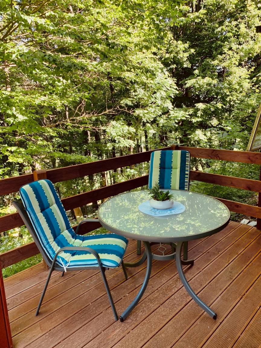 Genießen Sie die großzügige Terrasse mit direktem Waldblick – ideal für Frühstück an der frischen Luft oder entspannte Abende.