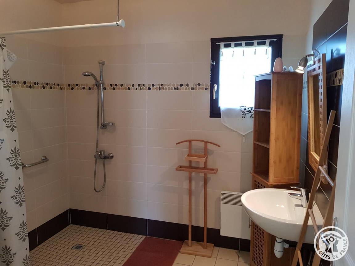 „Ce gite est bien conçu à quelques détails près (porte intérieure du frigo très haute, glace au-dessus du lavabo inutilisable en fauteuil roulant), sinon le logement est vaste, on circule sans problème dans toutes les pièces, bien équipé (lave linge, lave vaisselle, etc.) . Le petit village est en zone blanche donc aucune connexion, mais le gite est équipé de la fibre optique et offre donc un très bon débit pour internet en illimité. C'est un lieu très calme propice à des balades dans la campagne environnante. Propriétaire très sympathique et accueillante.“