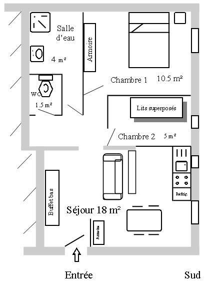 45 m² Gîte ∙ 2 Schlafzimmer ∙ 3 Gäste