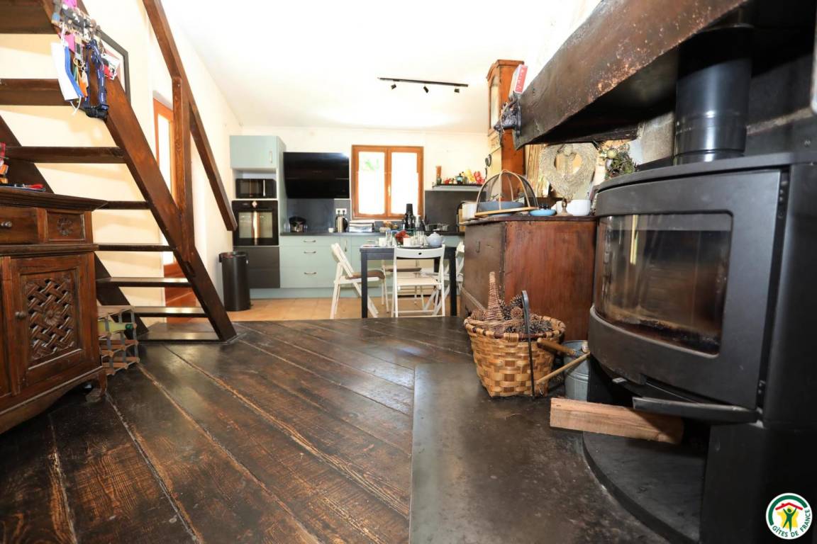 Unabhängiges Haus auf mehreren Ebenen wie folgt angeordnet: im Erdgeschoss Wohnzimmer mit Küchenbereich, Wohnzimmer und Loungebereich (Holzofen), Schlafzimmer (1x90x190), Waschküche/WC, Polstermöbel. Halbe Ebene (3 Stufen): Schlafzimmer mit Zugang zur Terrasse (2x90x190), Duschbad, WC. 1. Stock: Schlafzimmer (1x160x200), Mezzanine mit Schreibtisch, Bildschirm, Xbox-Konsole vorhanden und Schlafbereich, der zum Schlafen genutzt werden kann (160x200). Zur alleinigen Nutzung: 3 ha Grundstück, Schwimmbad witterungsabhängig von Mitte Mai bis Ende September geöffnet, Größe 4x8m, maximale Tiefe 2m, gesichert durch Schiebedach. Im Dorf: kostenloser Tennisplatz auf Reservierung, Tischtennis, Badminton und Volleyball, städtisches Schwimmbad. Aus dem ehemaligen Schafstall ist eine entspannte Adresse geworden, ein echter Kokon, in dem Sie das ganze Jahr über zu zweit, mit der Familie oder mit Freunden neue Energie tanken.