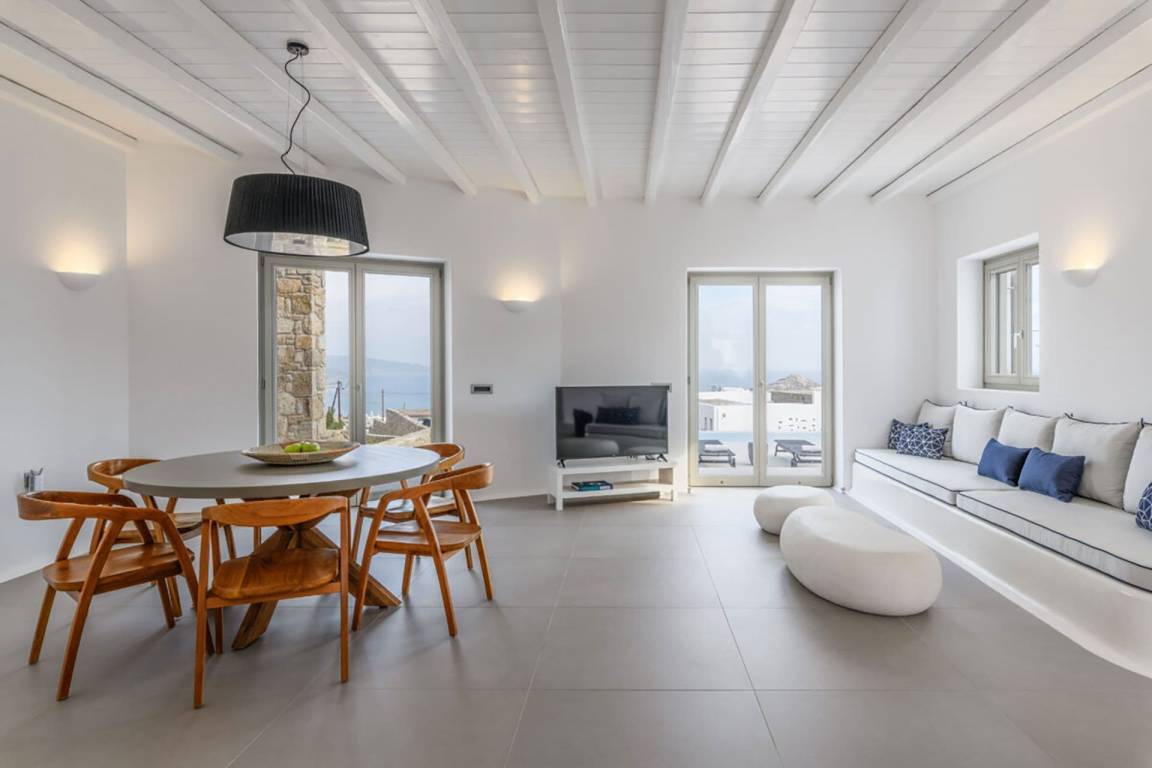 Die Villa Psiche umfasst insgesamt 3 Schlafzimmer und 3 Bäder und bietet Platz für bis zu 6 Gäste. Die Räumlichkeiten verteilen sich über mehrere Geschosse und gliedern sich in großzügig bemessene Schlafbereiche sowie geräumige Wohn- und Essbereiche.