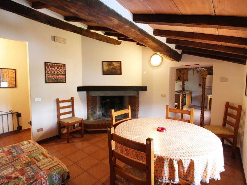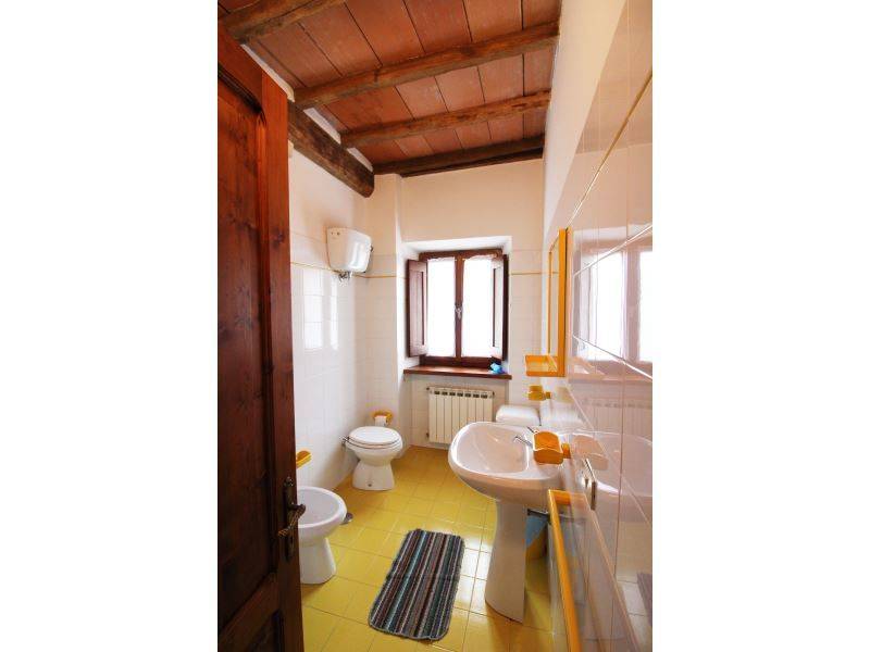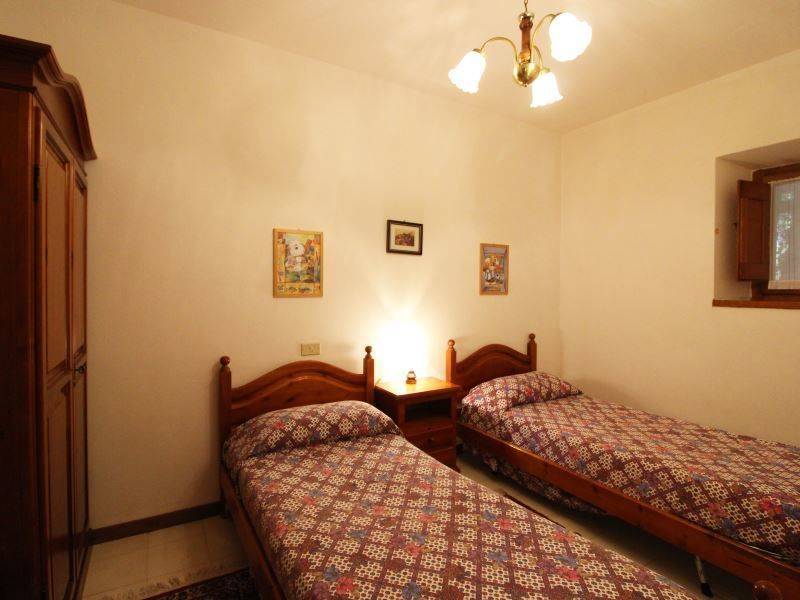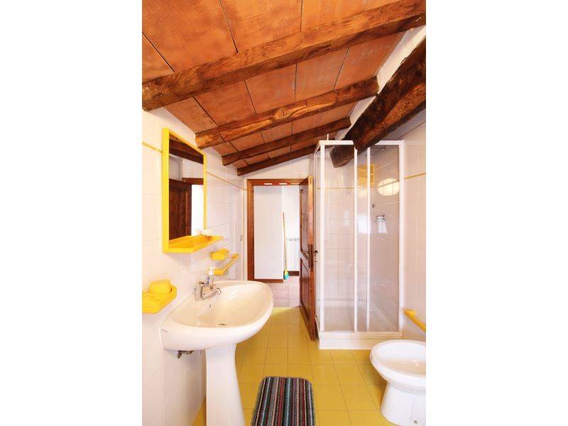 ERSTER STOCK: (Zugang über eine Außentreppe mit typischer kl. Loggia): Wohnraum mit Kamin, Sofas und TV-Satelliten, Bad mit Dusche, zwei Doppelzimmer eines davon ein Durchgangszimmer und mit Kamin, Bad mit Dusche.