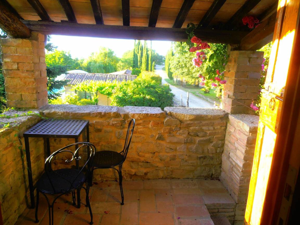 Schlafzimmer mit Bad (16 m²): zwei Einzelbetten, WiFi Internet, Fliegengitter, tragbarer Ventilator, Waschbecken, WC, Dusche, Ausgang auf den Garten.