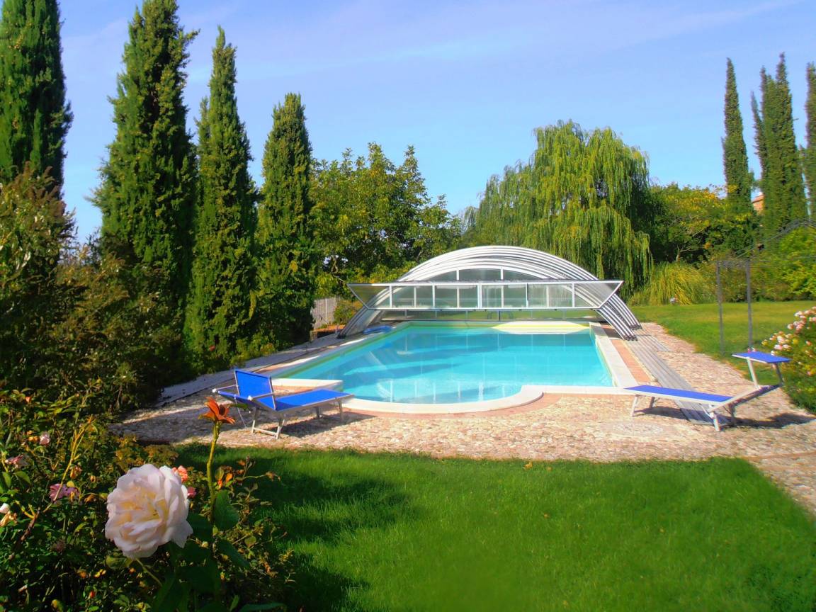 Der Swimming-Pool hat eine Teleskop-Abdeckung; um sie zu öffnen oder zu schließen muss der Vermieter der Anlage kontaktiert werden. Vom 15. Mai bis zum 15. Juni und vom 1. September bis zum 29. Oktober kann der Swimming-Pool nur mit Abdeckung genutzt werden.