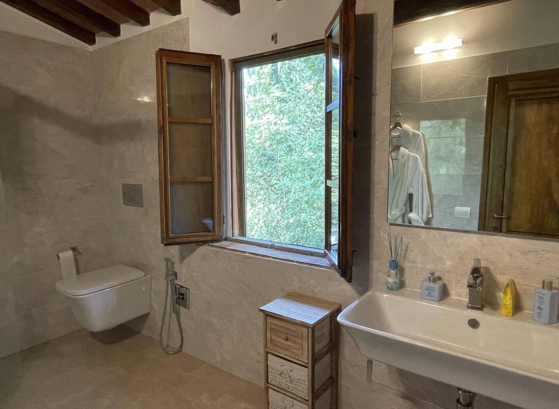 Schlafzimmer mit Bad: Doppelbett, Krippe, WiFi Internet, Klimaanlage, Waschbecken, WC, Dusche.
