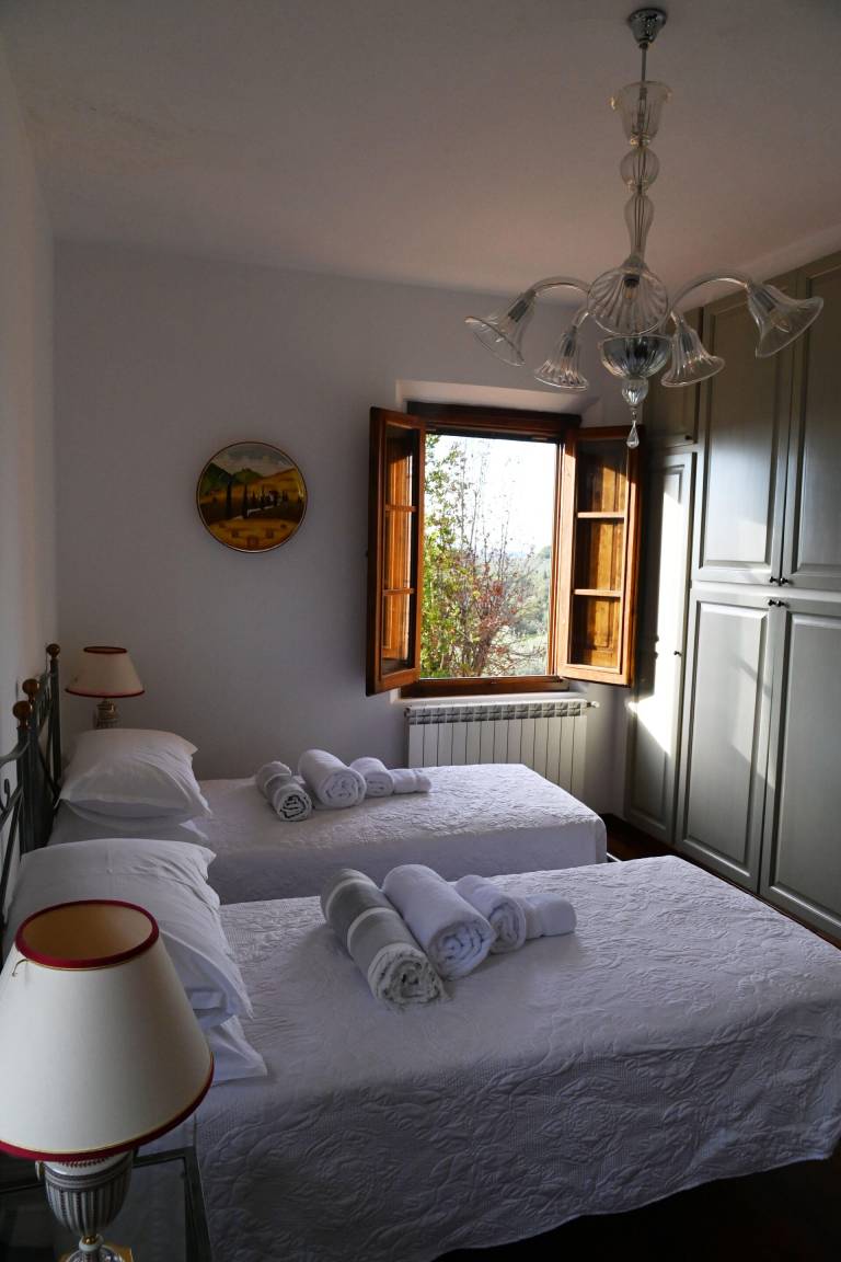 Schlafzimmer mit Bad 3: zwei Einzelbetten, WiFi Internet, Klimaanlage, Fliegengitter, Waschbecken, WC, Bidet, Dusche.