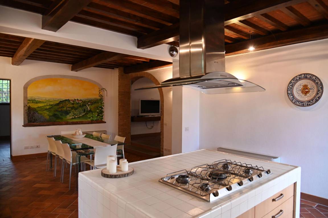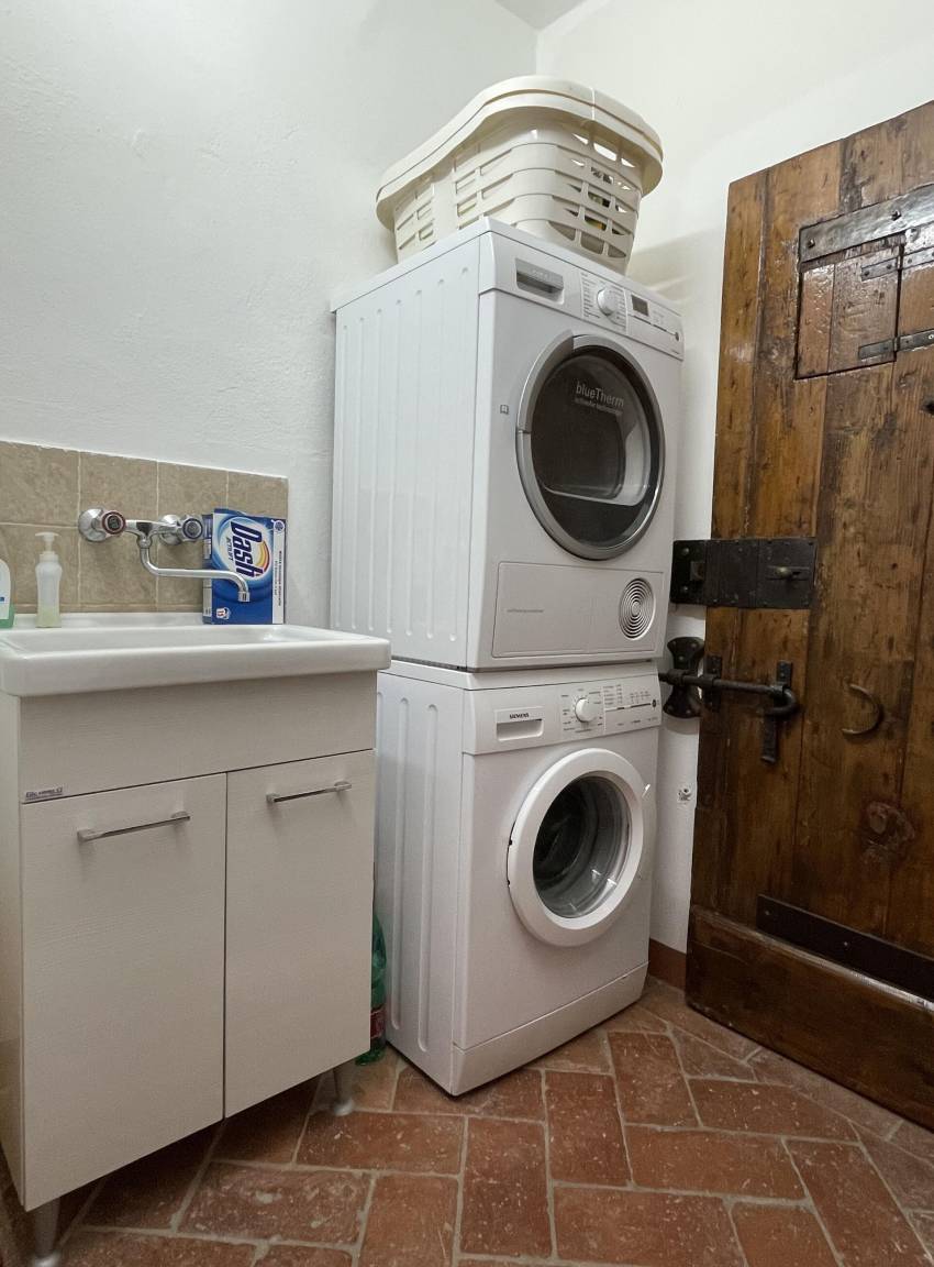 Wohnküche: gut ausgestattete Küche, Esstisch (Personen: 10), Spülmaschine, Kühlschrank, Tiefkühler, Mikrowelle, Herd, Ofen, Toaster, Italienische Kaffeemaschine, Amerikanische Kaffeemaschine, Sofa, Kamin, WiFi Internet, Klimaanlage, Kinderhochstuhl, Satelliten-TV, TV, tragbarer Ventilator, Ausgang auf den Garten, Ausgang auf den Patio.