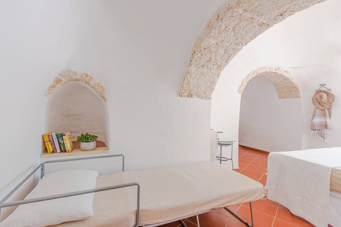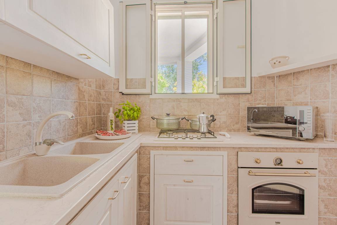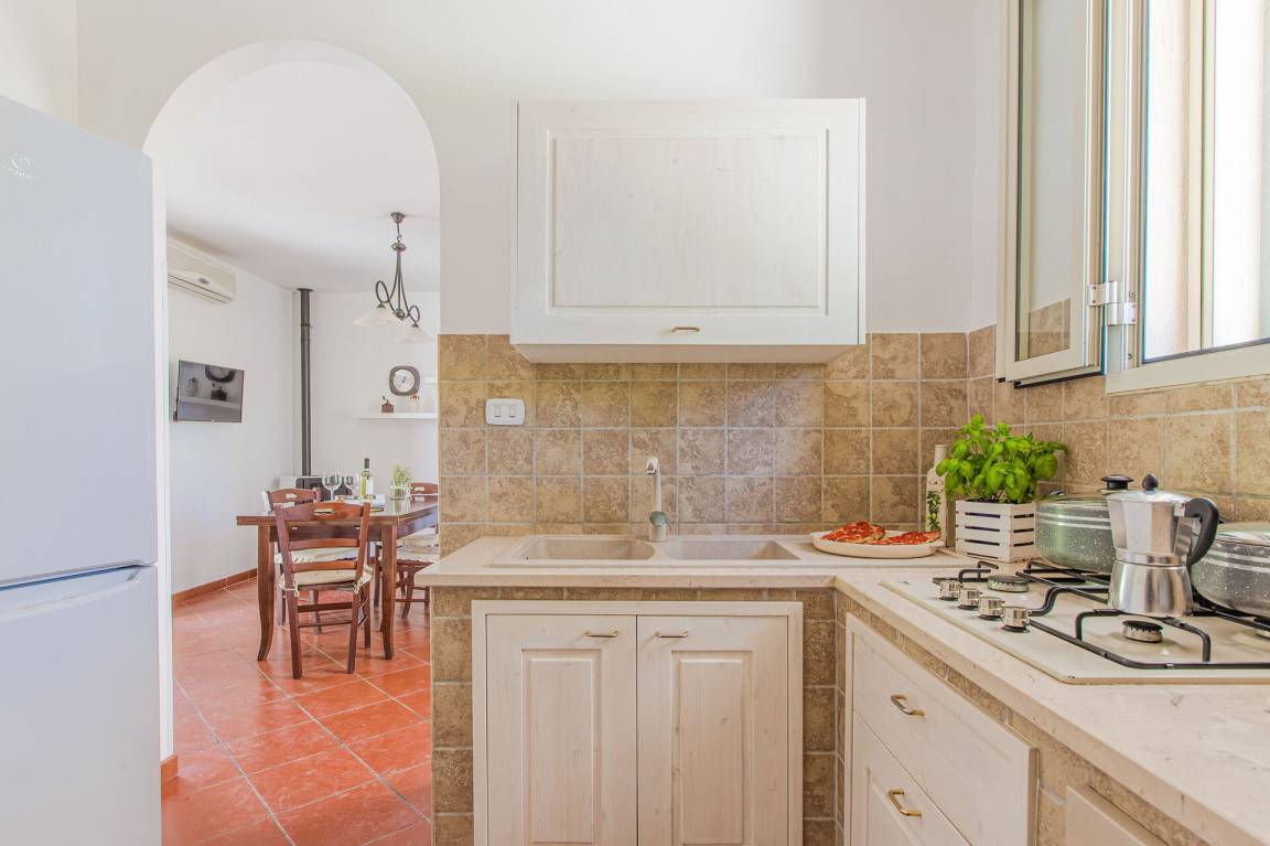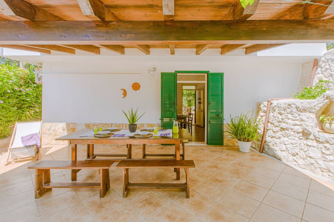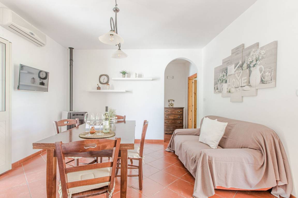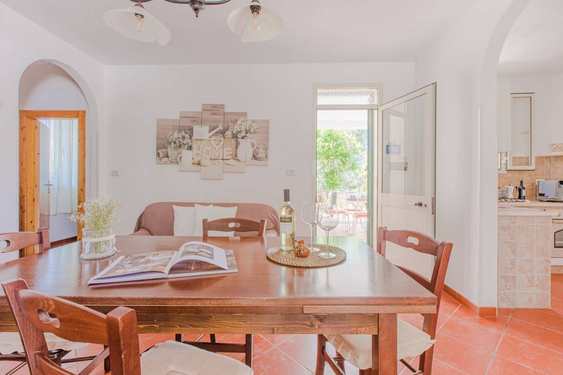 offener Raum: Sofa, Esstisch, Einzelbett, Sofa bed, WiFi Internet, Klimaanlage, TV, Kühlschrank, Herd, Tiefkühler, gut ausgestattete Küche, Ofen, Italienische Kaffeemaschine, Ausgang auf den Garten, Ausgang auf den Patio.