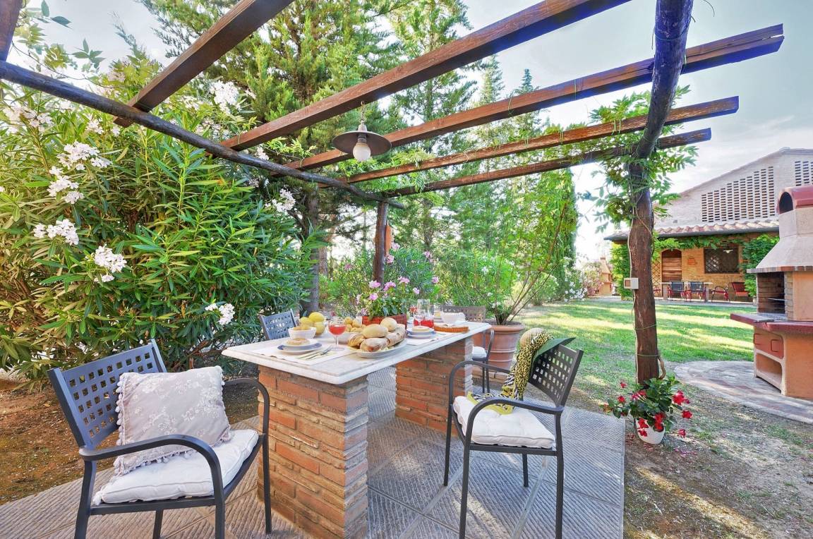 Private mit Stühlen und Tisch ausgestattete Laube.