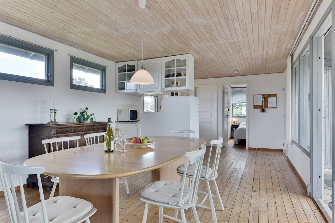 Ein gemütliches Ferienhaus am schönen Hesseløje Strand in der Nähe von Faaborg. Das Haus liegt erhöht, sodass Sie vom Grundstück aus Blick auf die Gegend haben. Gleichzeitig ermöglicht die zurückgezogene Lage ausreichend Möglichkeiten für Outdoor-Aktivitäten.