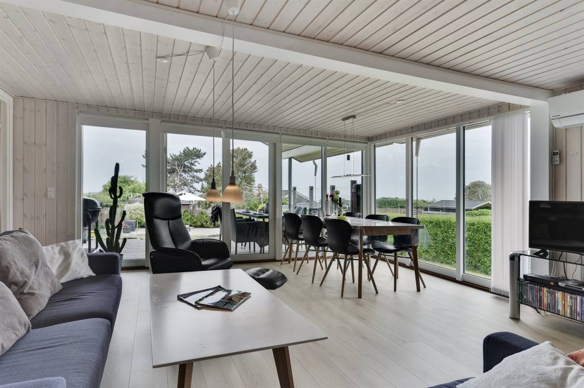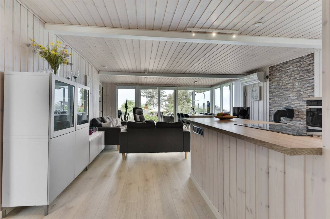 Ein schönes Ferienhaus mit Meeresblick sowohl vom Haus als auch vom Grundstück. Das Ferienhaus liegt in einem Ferienhausgebiet, das zentral zu Aktivitäten, Sehenswürdigkeiten, lieblichen Naturgebieten und größeren Städten liegt.