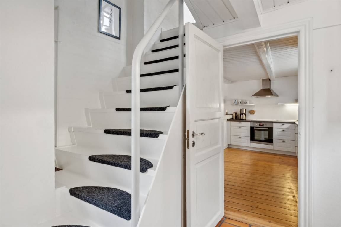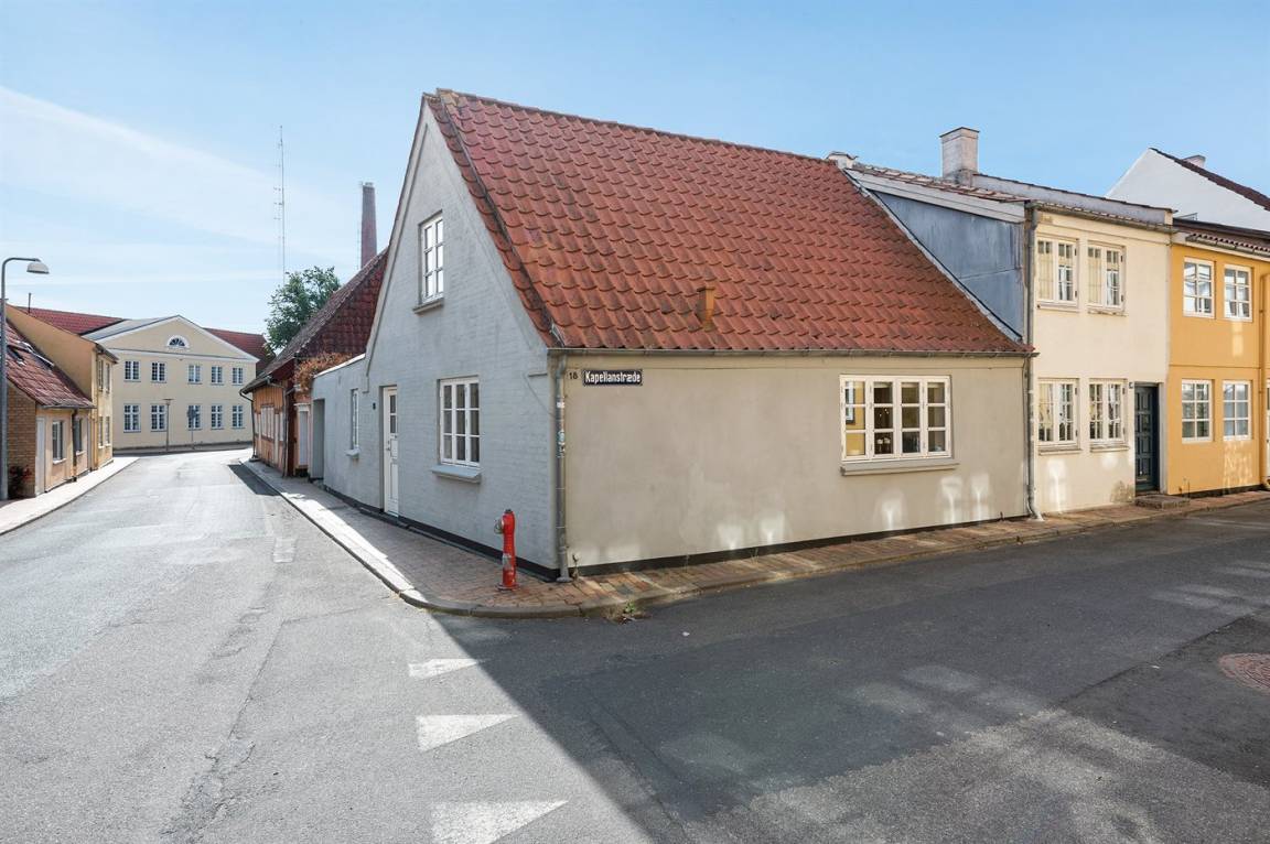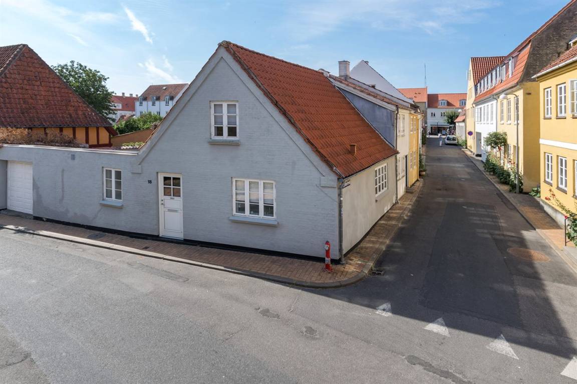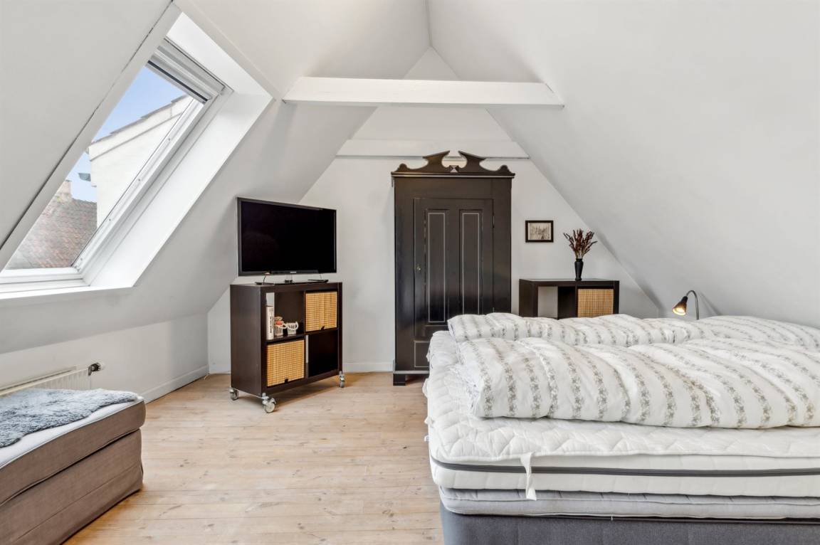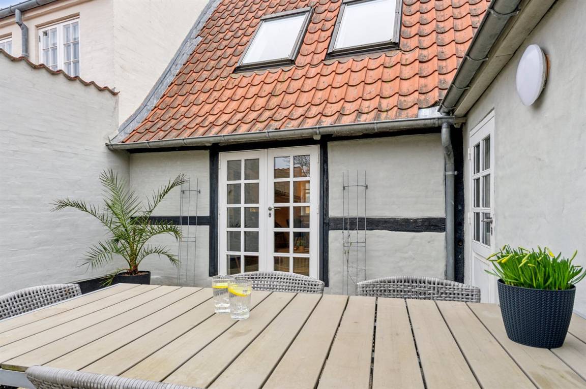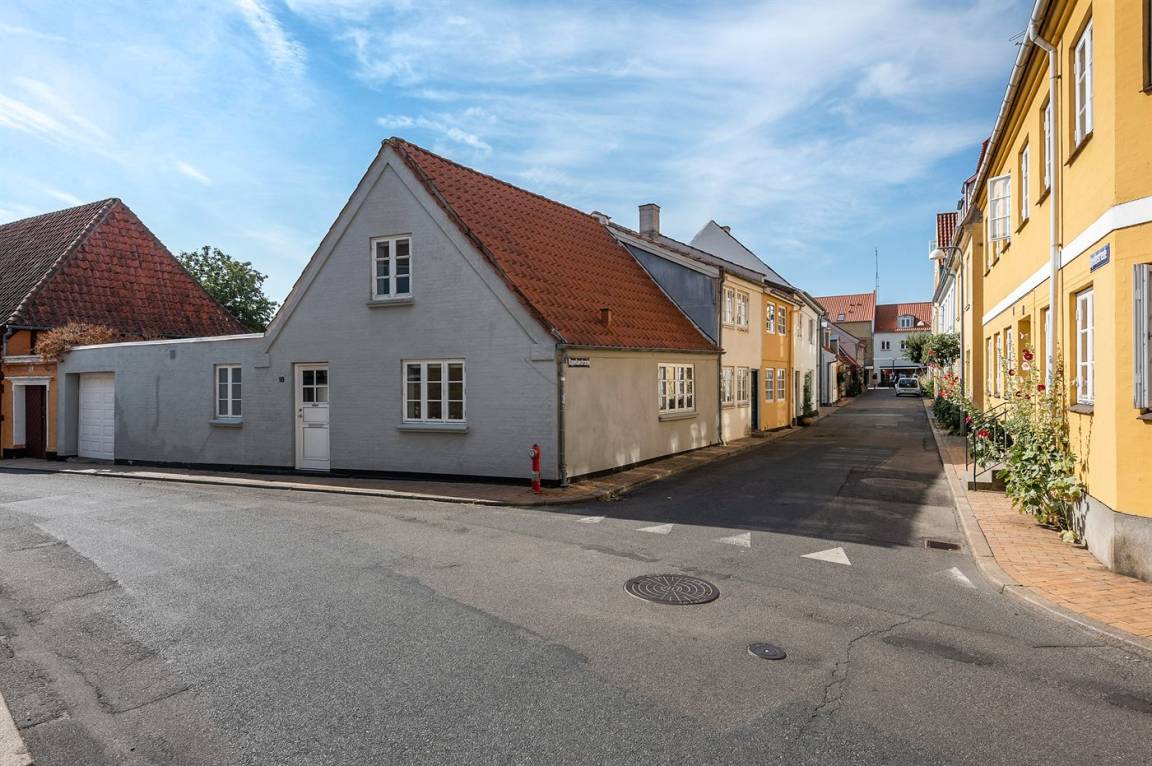 Dieses schöne Stadthaus liegt in einer der schönen Nebenstraßen in Faaborg - nur 75 m von der Geschäftsstraße und ca. 300 m vom lebhaften Hafen mit u. a. Kiosk und einem neuen Hafenbad entfernt. In Faaborg gibt es außerdem viele Sehenswürdigkeiten sowie eine gute Auswahl an Cafés und Speiselokale. Übrigens: Die 2 Schlafplätze auf der Schlafcouch befinden sich in einem Vorraum im Obergeschoss (siehe Grundriss).
