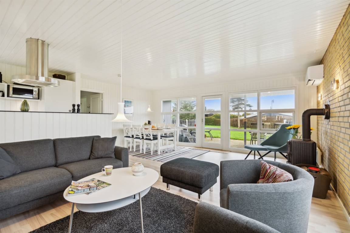 Das Haus ist hell und modern eingerichtet und liegt auf einem doppelten Grundstück, sodass viel Platz für Outdoor-Aktivitäten vorhanden ist. Vom Haus und der Terrasse aus hat man einen Blick über die Helnæs-Bucht.