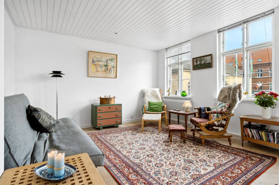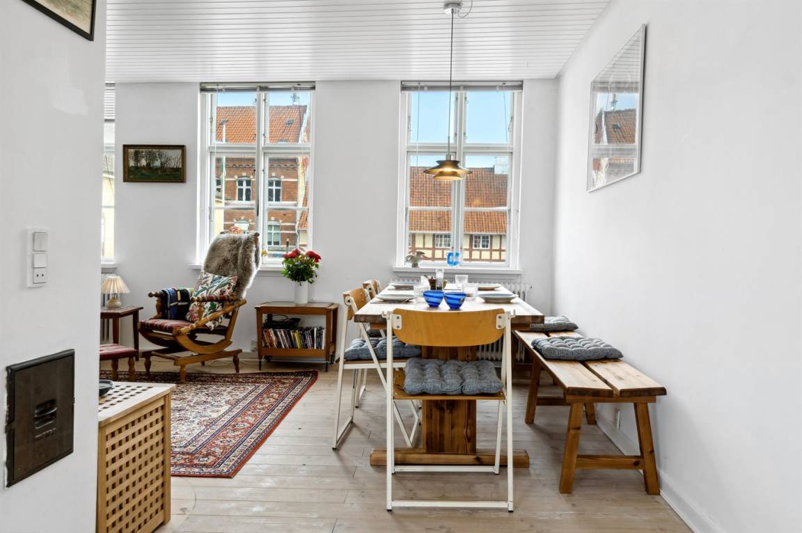 Gemütliche Ferienwohnung in äußerst zentraler Lage im alten Zentrum von Faaborg. Die Wohnung befindet sich im 1. und 2. Stock und bietet einen Blick auf den Platz. Vom offenen Wohnküchenbereich gibt es Zugang zu einer großen, sonnigen Holzterrasse auf der Rückseite des Hauses. Die Wohnung liegt in der Nähe des Yachthafens, des Hafenbads und der gemütlichen Straßen der Stadt mit Geschäften, Restaurants usw.