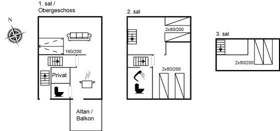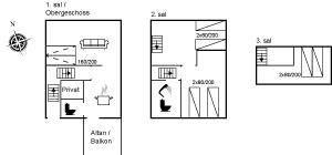 SchlafverhältnisseDie Schlafplätze verteilen sich auf 2 Schlafräume. 4 Schlafplätze in Einzelbetten. 2 Schlafplätze auf einer Doppelschlafcouch. 2 Schlafplätze auf Matratzen. 2 von diesen Schlafplätzen befinden sich im offenen Obergeschoss, und 2 befinden sich im Wohnzimmer.